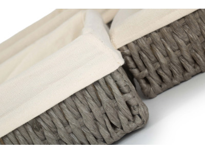 GREY PAPER ROPE STORAGE BASKETS with WHITE LINING SET 4