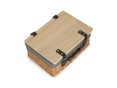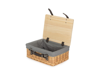14" Buff Hamper With Wooden Lid - Grey Sage Lining