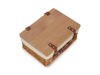 14" Double Steamed Hamper With Wooden Lid - White Lining