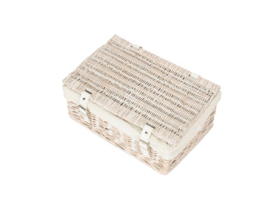 14 inch EMPTY WICKER HAMPER BASKET - WHITE WASH - BLACK LINING