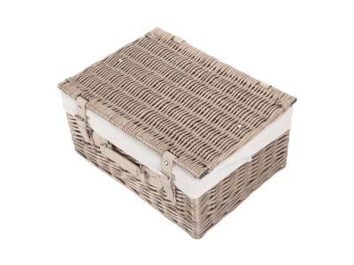 Full antique wash finish willow - cream faux leather - removable cotton lining - metal chains