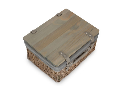 14" ANTIQUE WASH HAMPER with WOODEN LID - GREY SAGE LINING