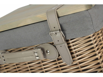 Full antique wash finish willow - pinewood - grey faux leather - removable cotton/polyester lining
