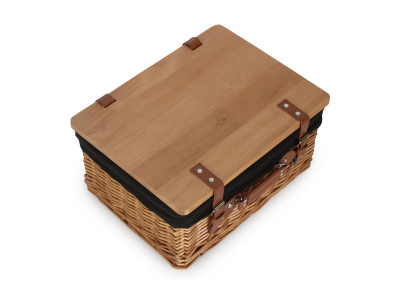 16" Double Steamed Hamper With Wooden Lid - Black Lining