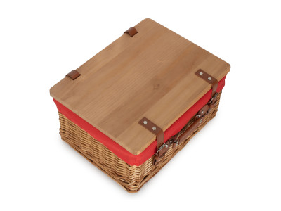 20" DOUBLE STEAMED HAMPER with WOODEN LID - RED LINING
