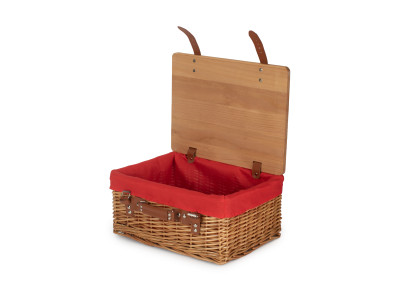 14" DOUBLE STEAMED HAMPER with WOODEN LID - RED LINING