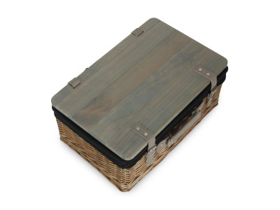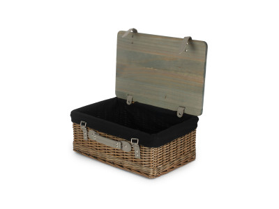 Full antique wash finish willow - pinewood - grey faux leather - removable cotton/polyester lining