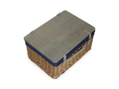 20" Antique Wash Hamper With Wooden Lid - Navy Blue Lining