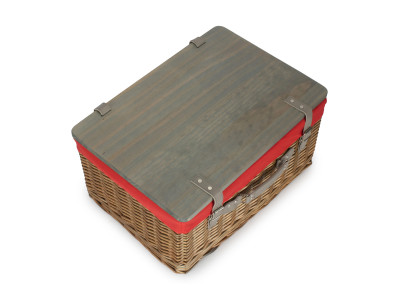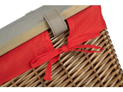 16" ANTIQUE WASH HAMPER with WOODEN LID - RED LINING