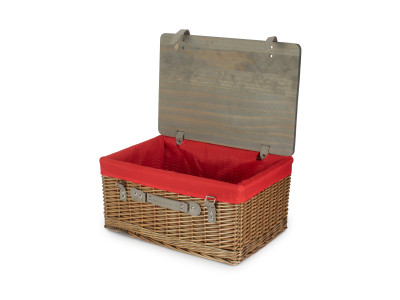 20" Antique Wash Hamper With Wooden Lid - Red Lining