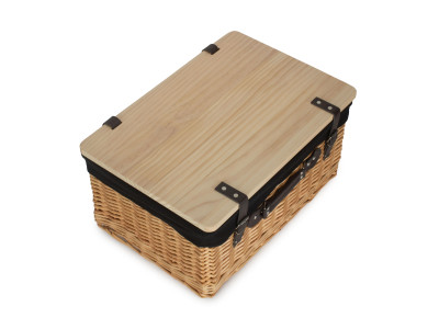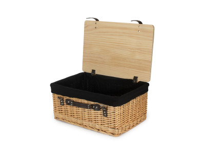 14" BUFF HAMPER with WOODEN LID- BLACK LINING