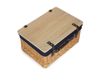 20" DOUBLE STEAMED HAMPER with WOODEN LID - NAVY BLUE LINING