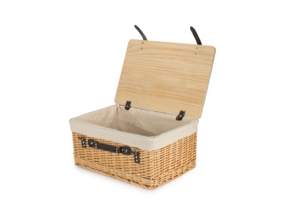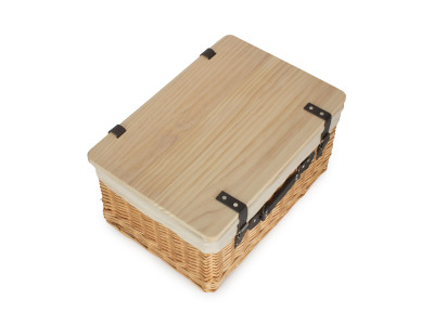 14" BUFF HAMPER with WOODEN LID - WHITE LINING