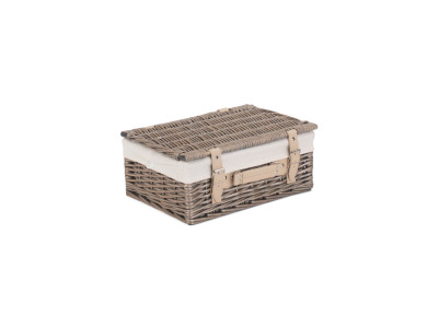 MEDIUM WHITE WASH FINISH STORAGE HAMPER with WHITE LINING