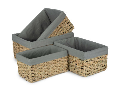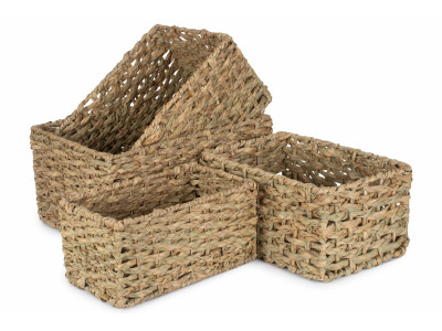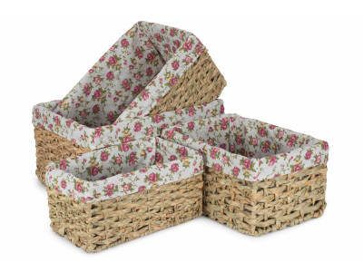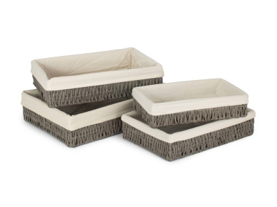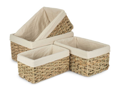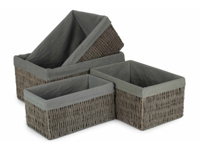 SQUARE TAPERED ROPE HANDLED RATTAN PLANTER with PLASTIC LINING SET 3
