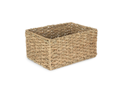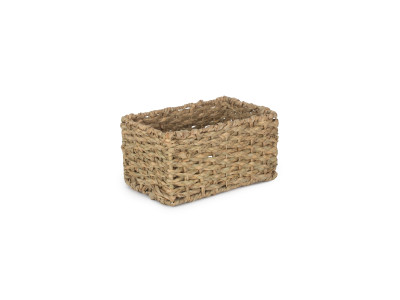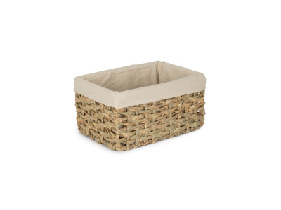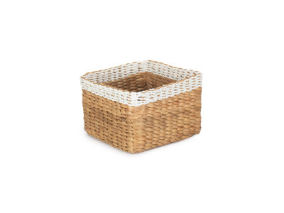 SMALL SQUARE TAPERED ROPE HANDLED RATTAN PLANTER with PLASTIC LINING