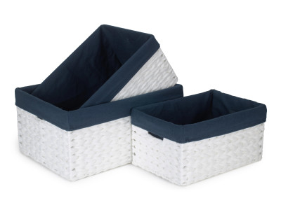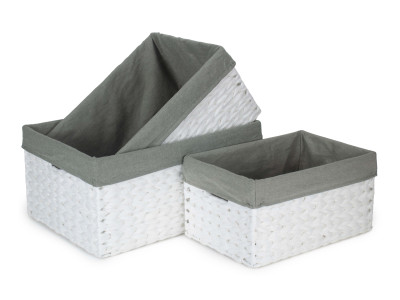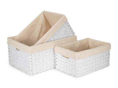 ROUND RATTAN LAUNDRY HAMPER BASKET with WHITE LINING SET 2