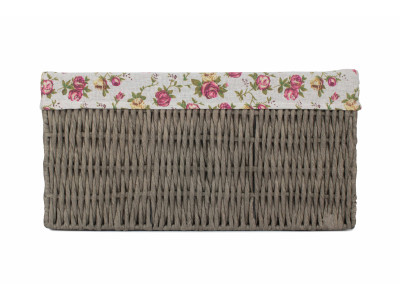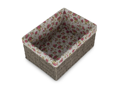 SMALL GREY PAPER ROPE STORAGE BASKET with GARDEN ROSE LINING