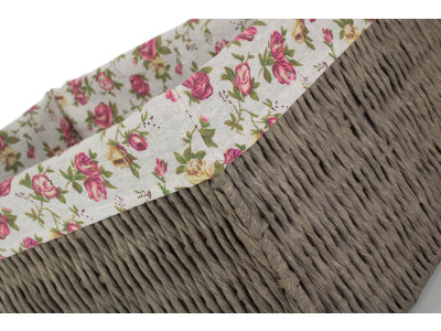GREY PAPER ROPE STORAGE BASKETS with GARDEN ROSE LINING SET 4