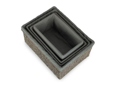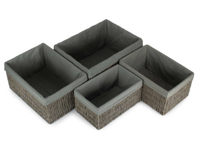 GREY PAPER ROPE STORAGE BASKETS with WHITE LINING SET 4