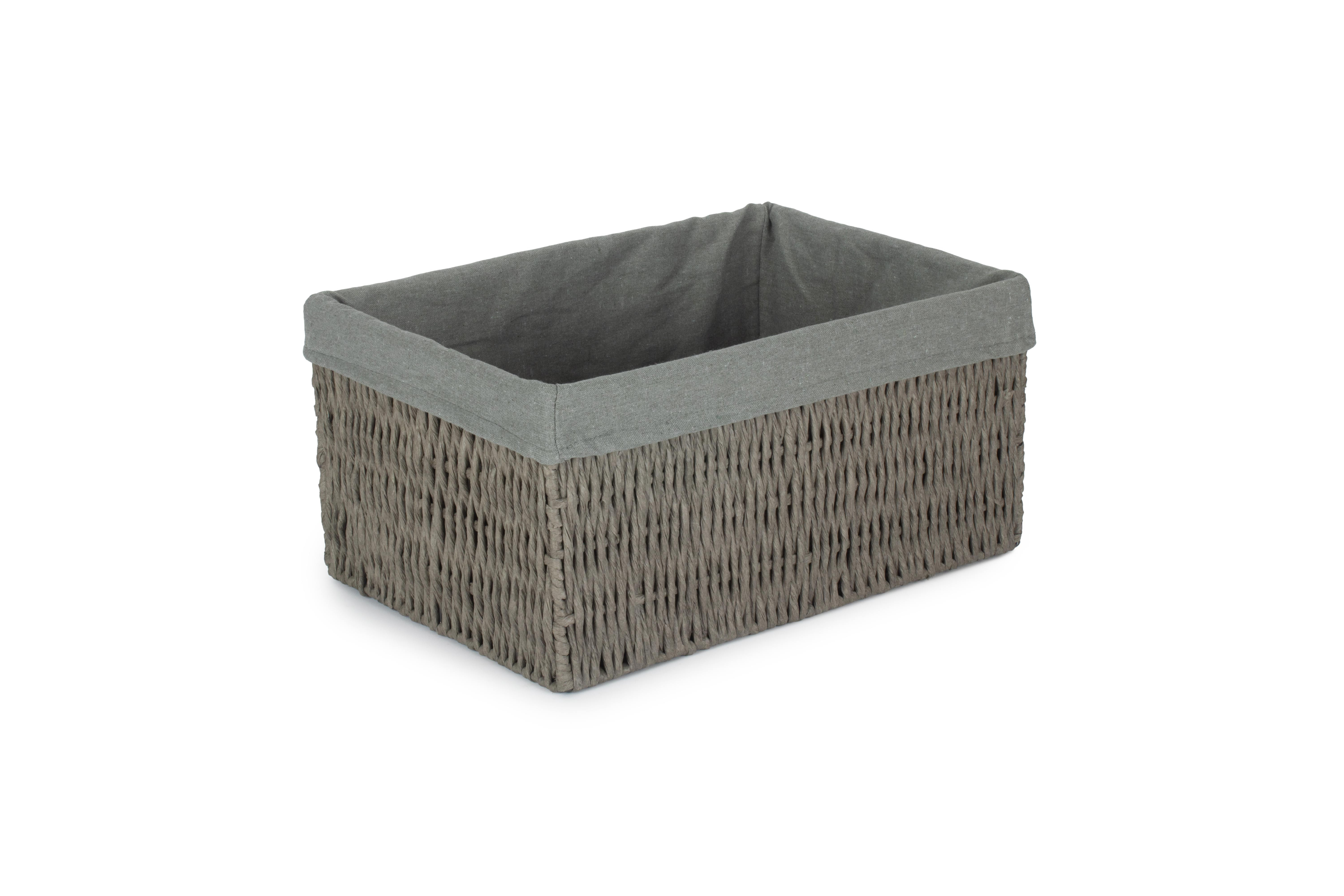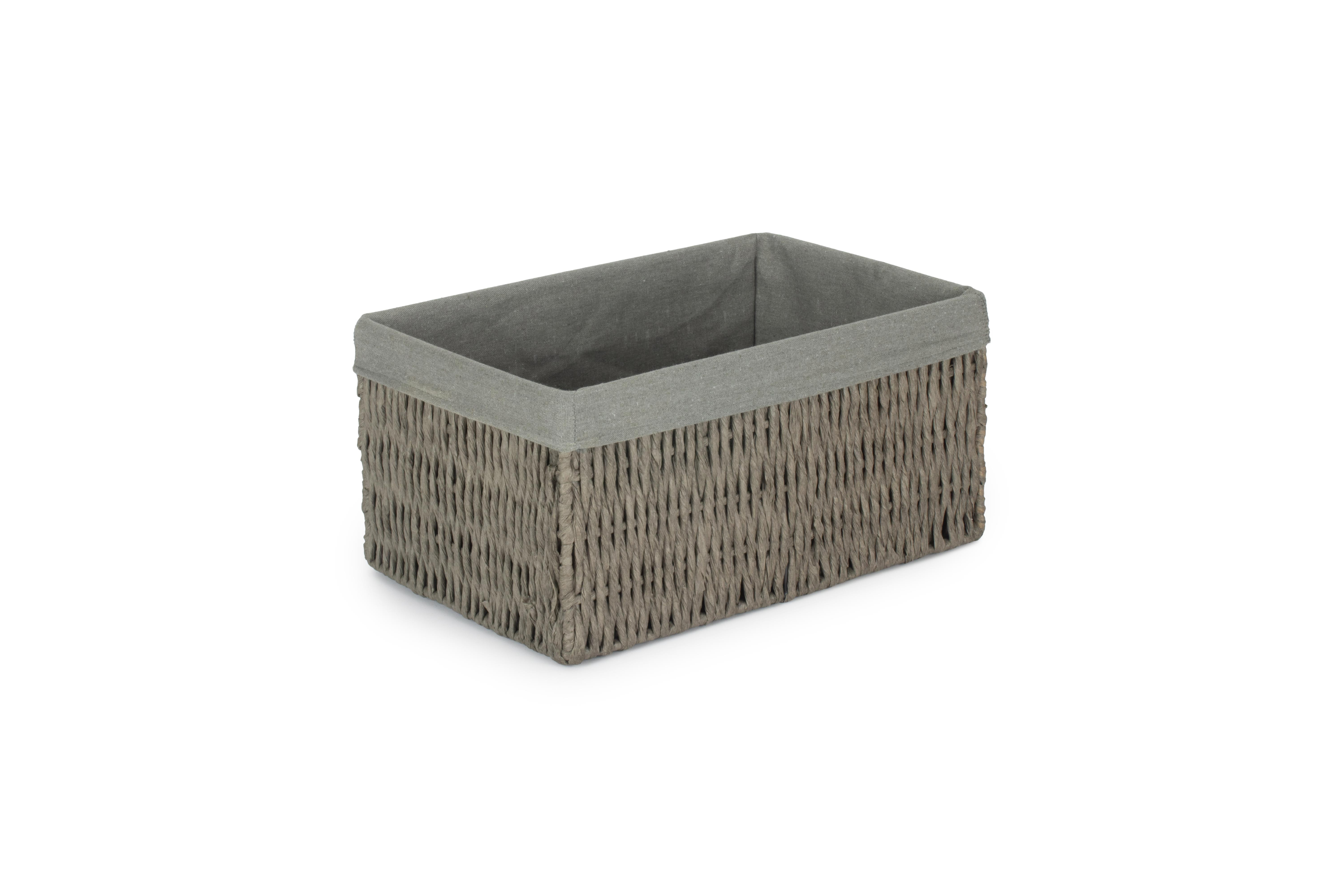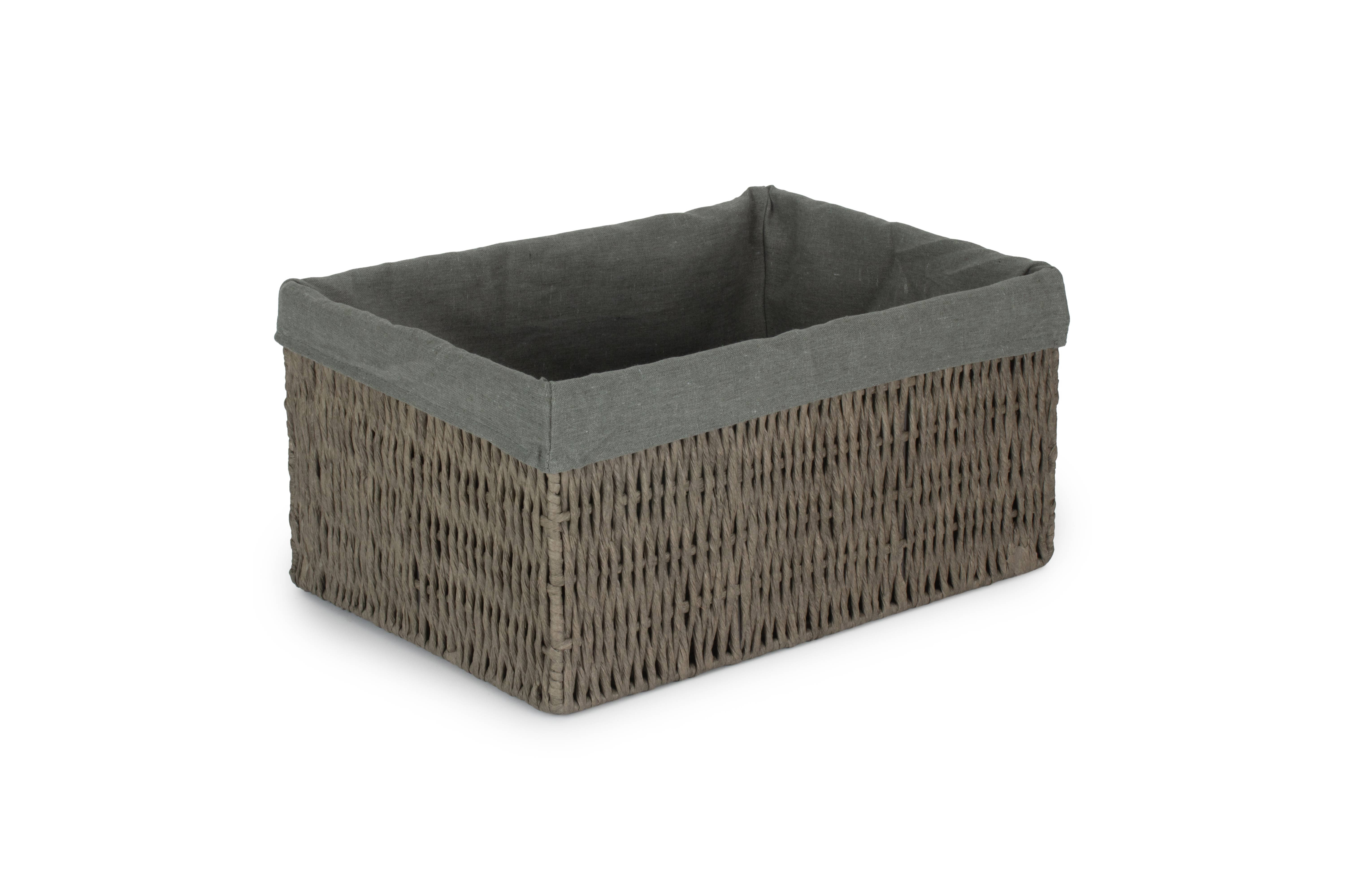 SMALL GREY PAPER ROPE STORAGE BASKET with GREY SAGE LINING