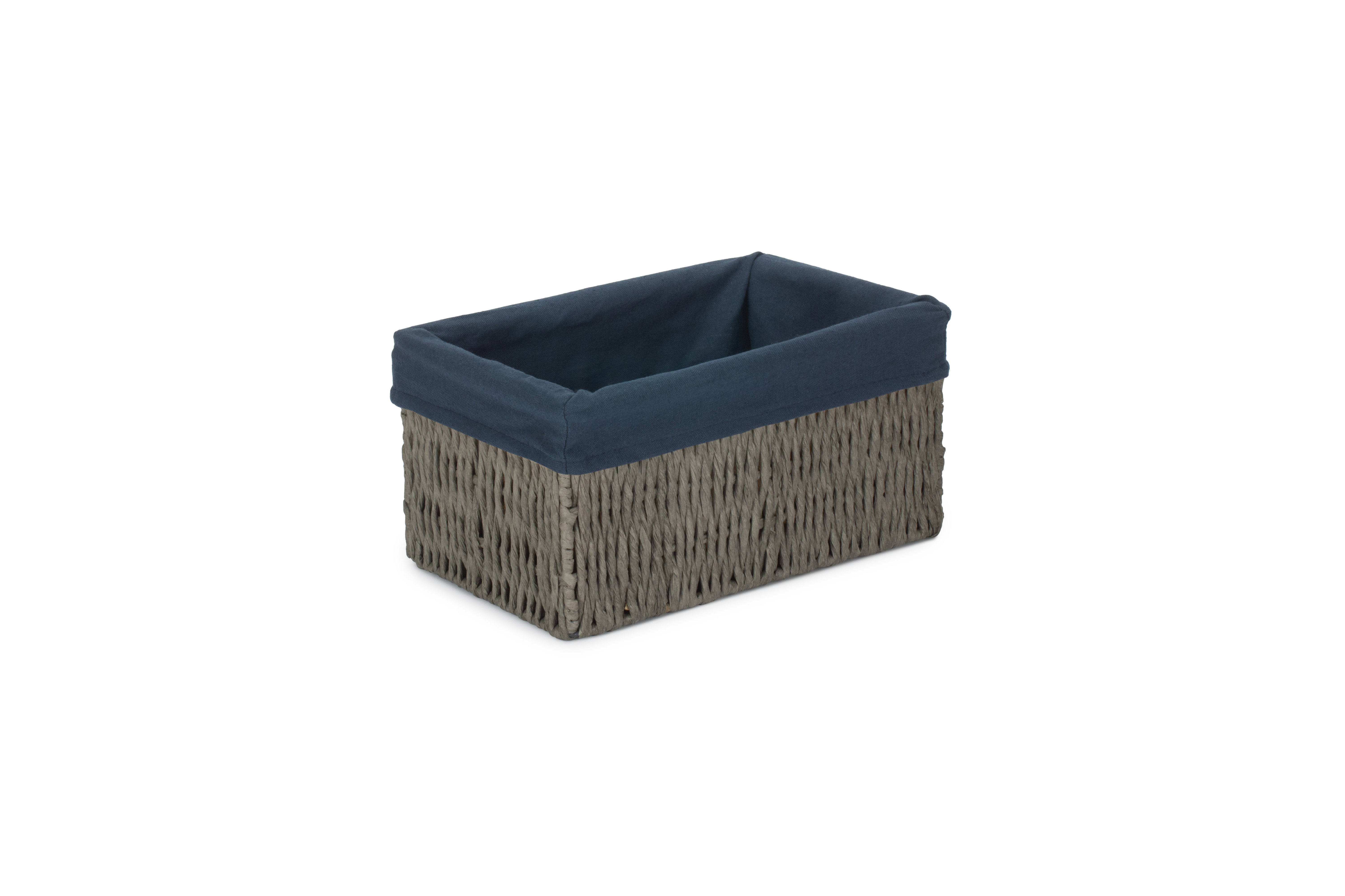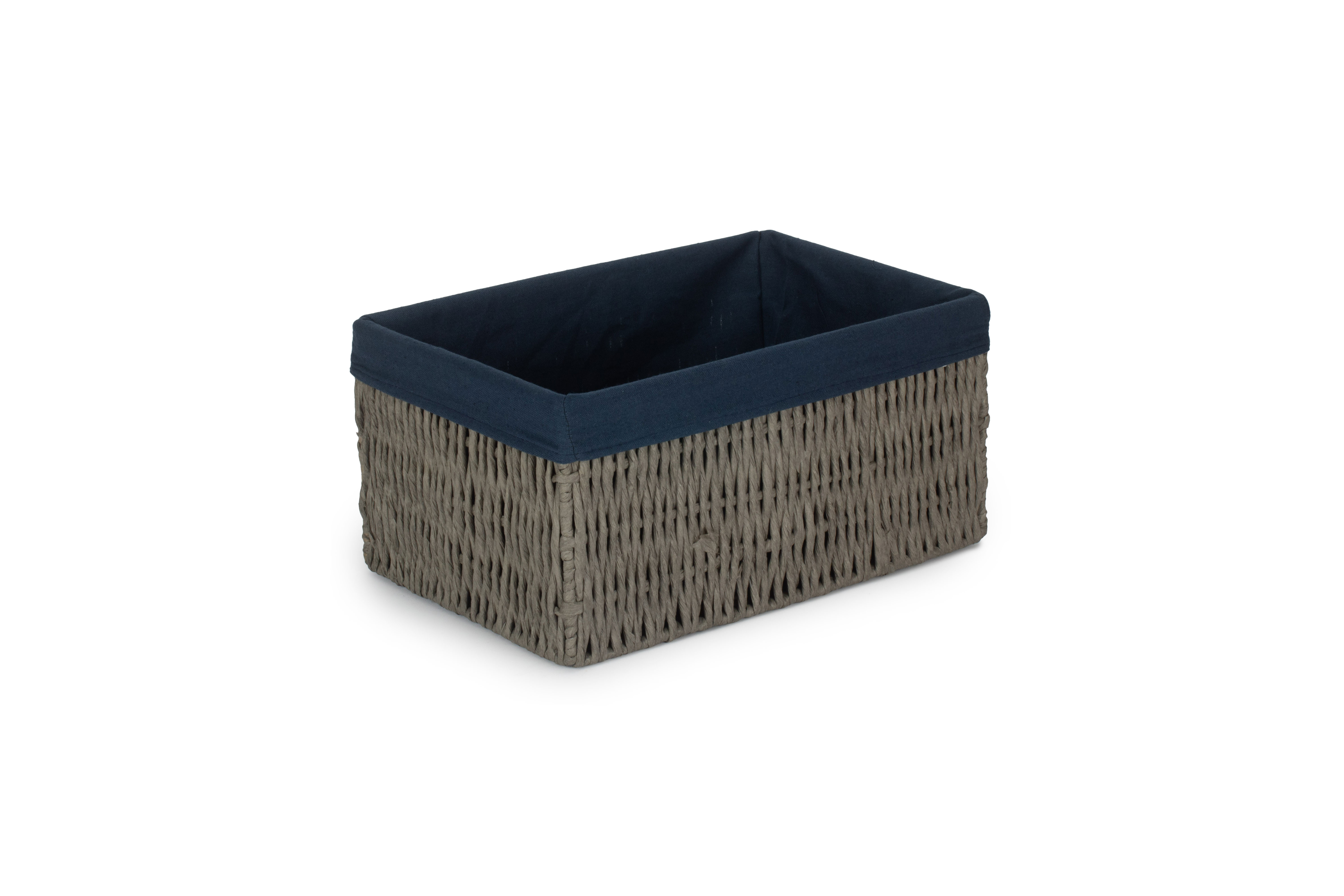 SMALL GREY PAPER ROPE STORAGE BASKET with NAVY BLUE LINING