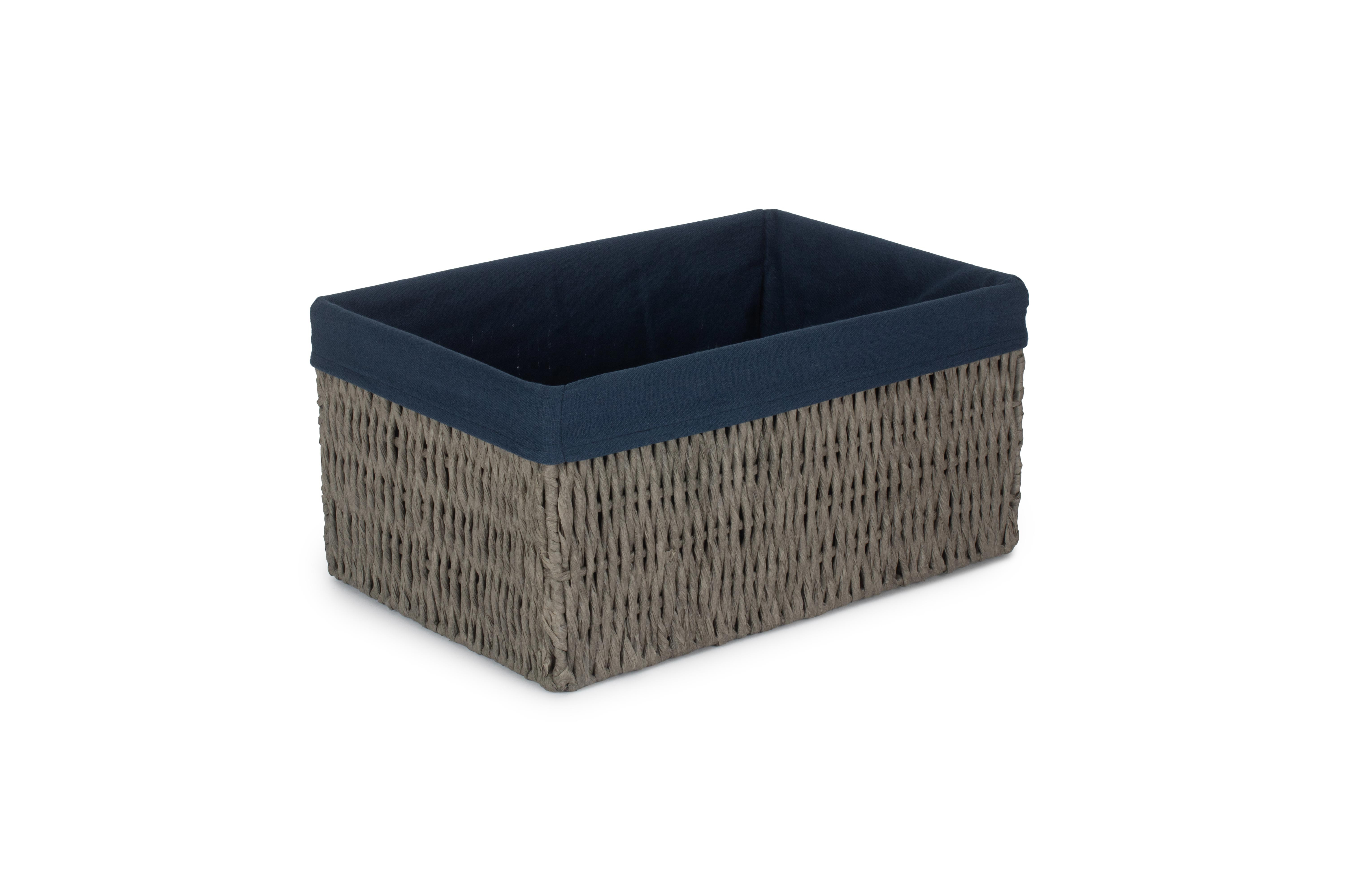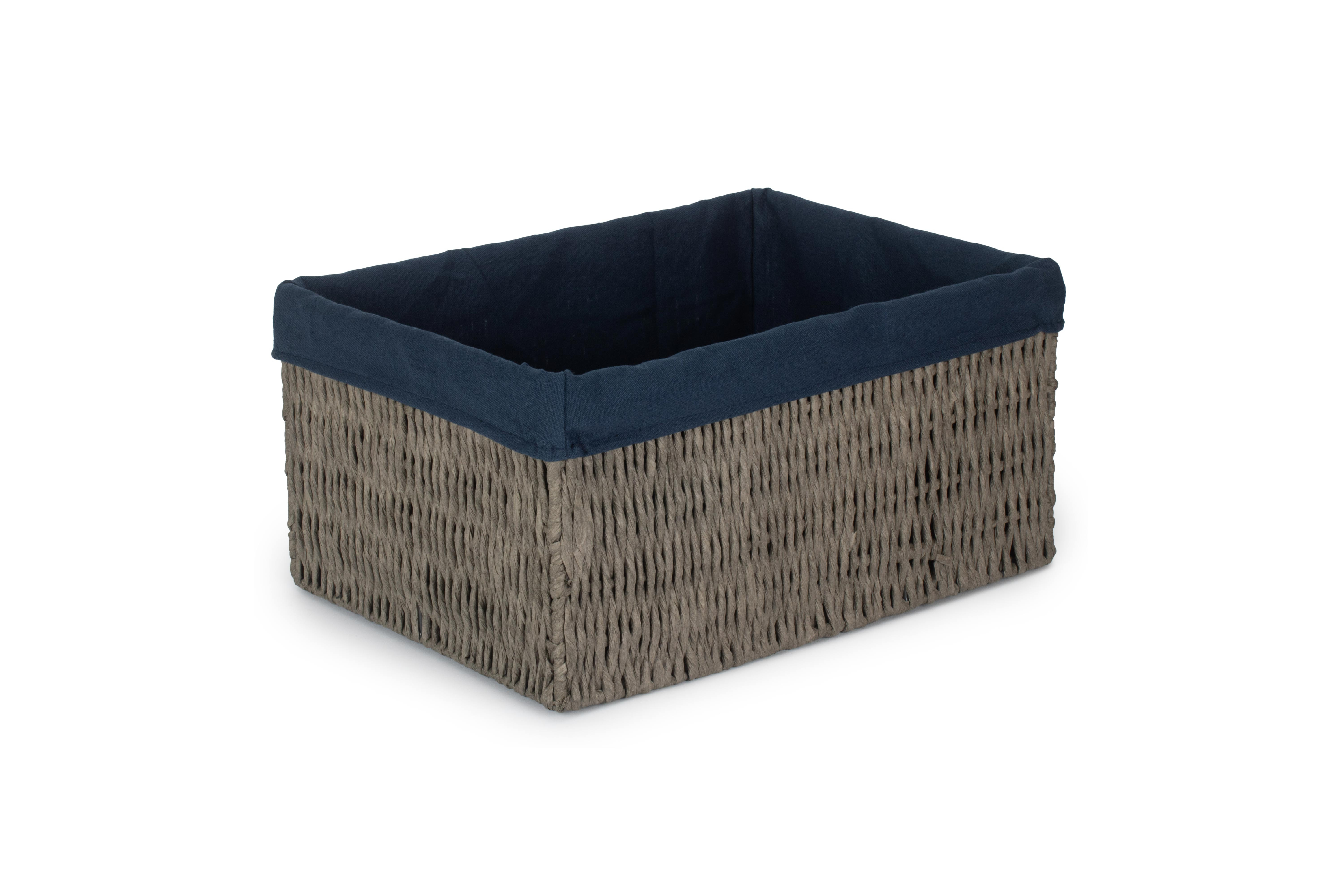 MEDIUM GREY PAPER ROPE STORAGE BASKET with NAVY BLUE LINING