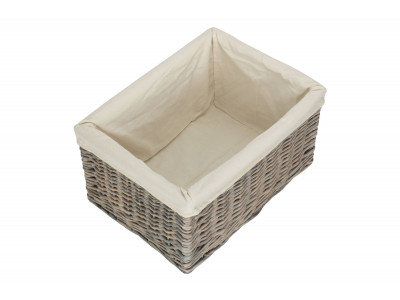 Full grey wash finish willow - integral handles - removable cotton lining