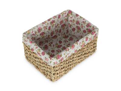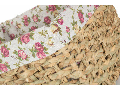 SMALL THATCH GRASS STORAGE BASKET with GARDEN ROSE LINING