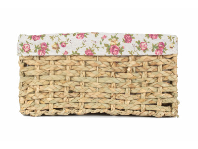 THATCH GRASS STORAGE BASKETS with GARDEN ROSE LINING SET 4