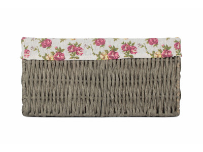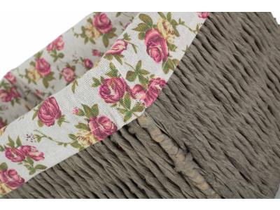SMALL GREY PAPER ROPE STORAGE BASKET with GARDEN ROSE LINING