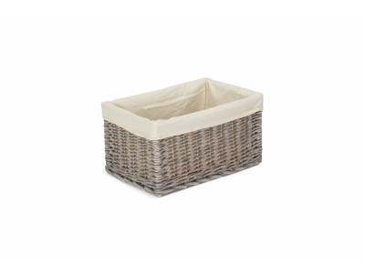 MEDIUM GREY WASH STORAGE BASKET with WHITE LINING