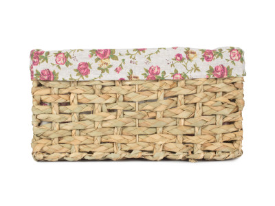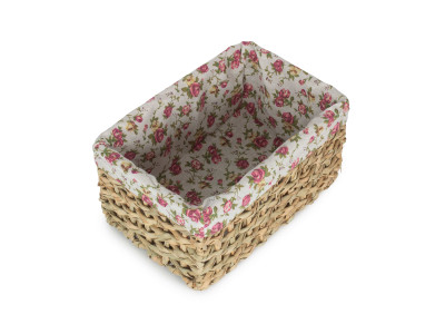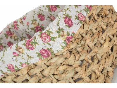SMALL THATCH GRASS STORAGE BASKET with GARDEN ROSE LINING
