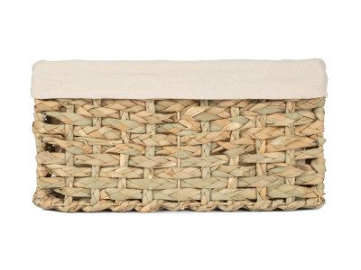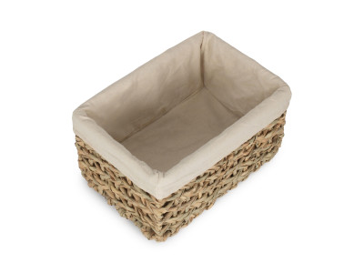 SMALL THATCH GRASS STORAGE BASKET with WHITE LINING