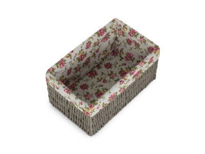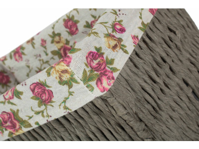 MEDIUM GREY PAPER ROPE STORAGE BASKET with GARDEN ROSE LINING