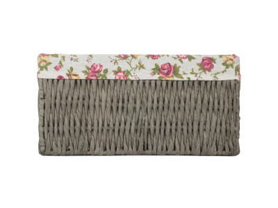 GREY PAPER ROPE STORAGE BASKETS with GARDEN ROSE LINING SET 4