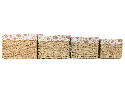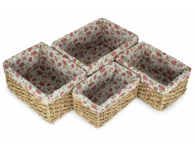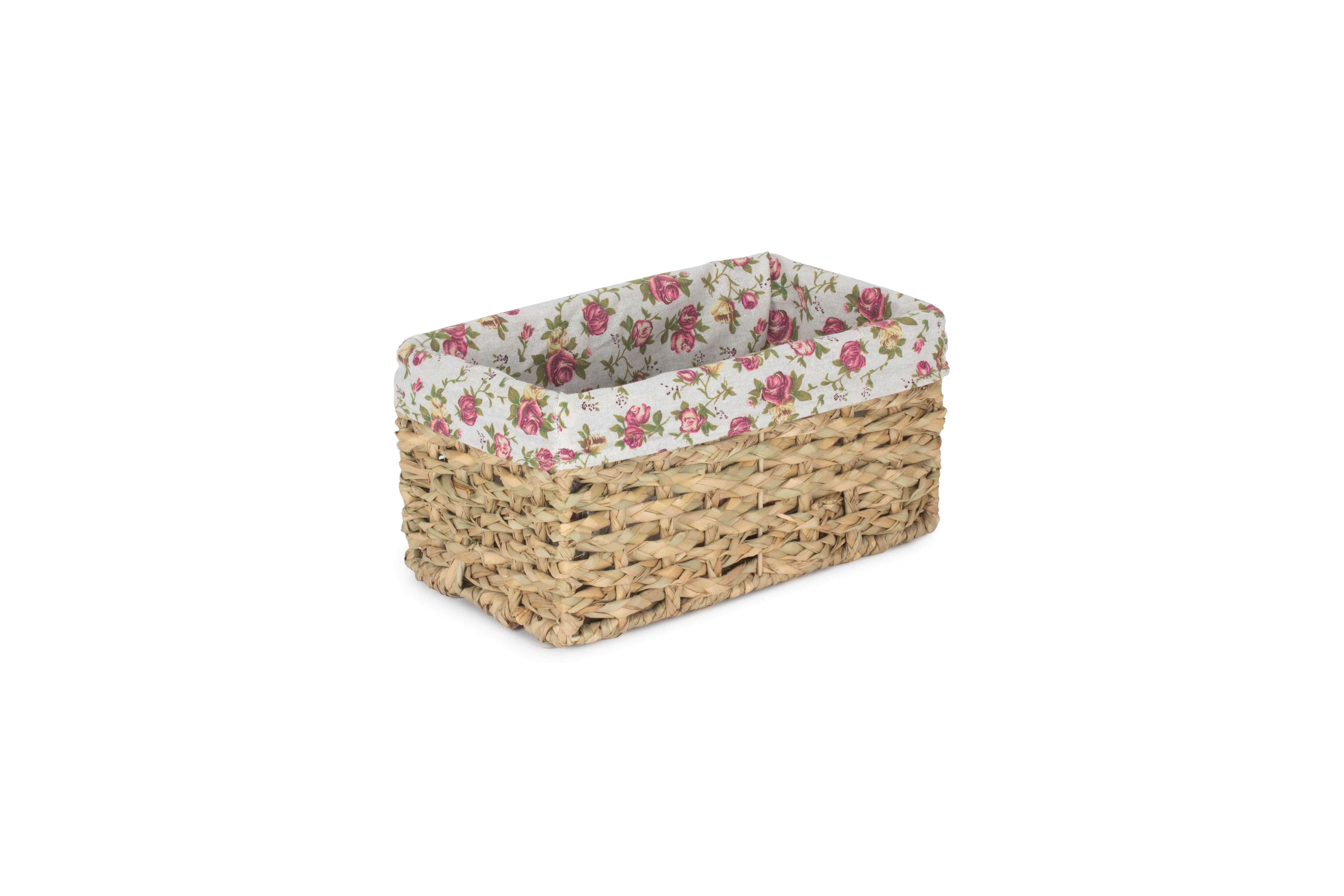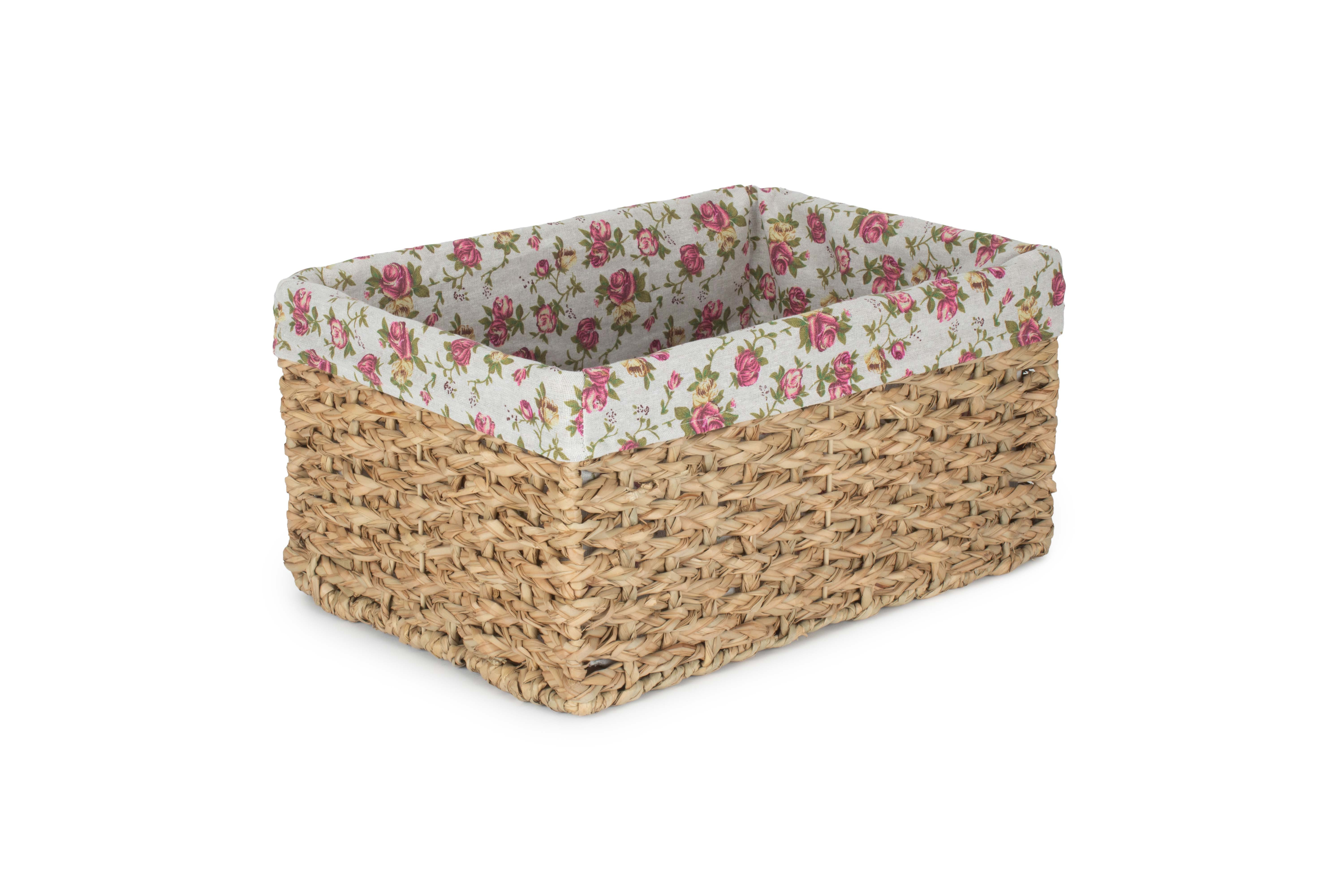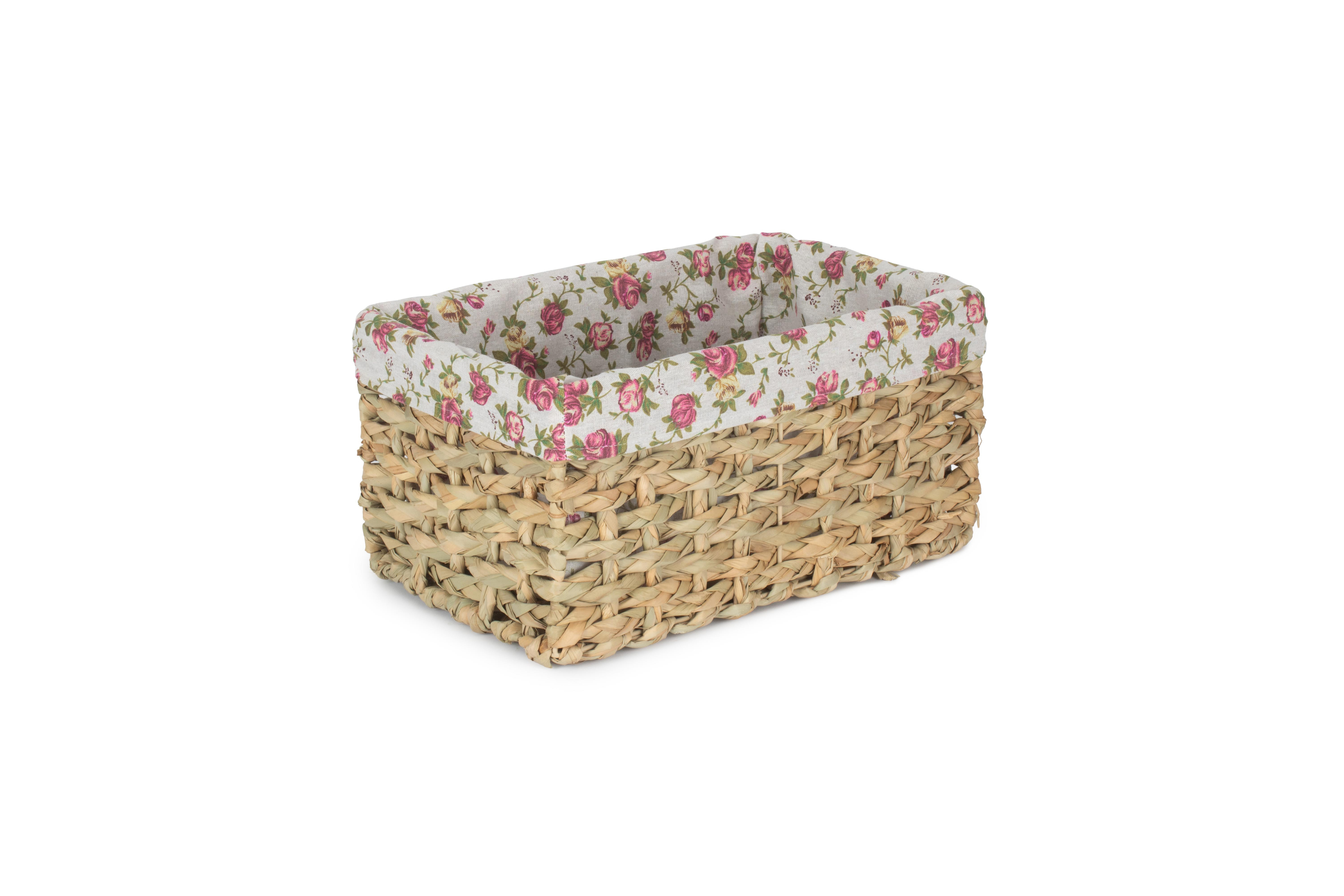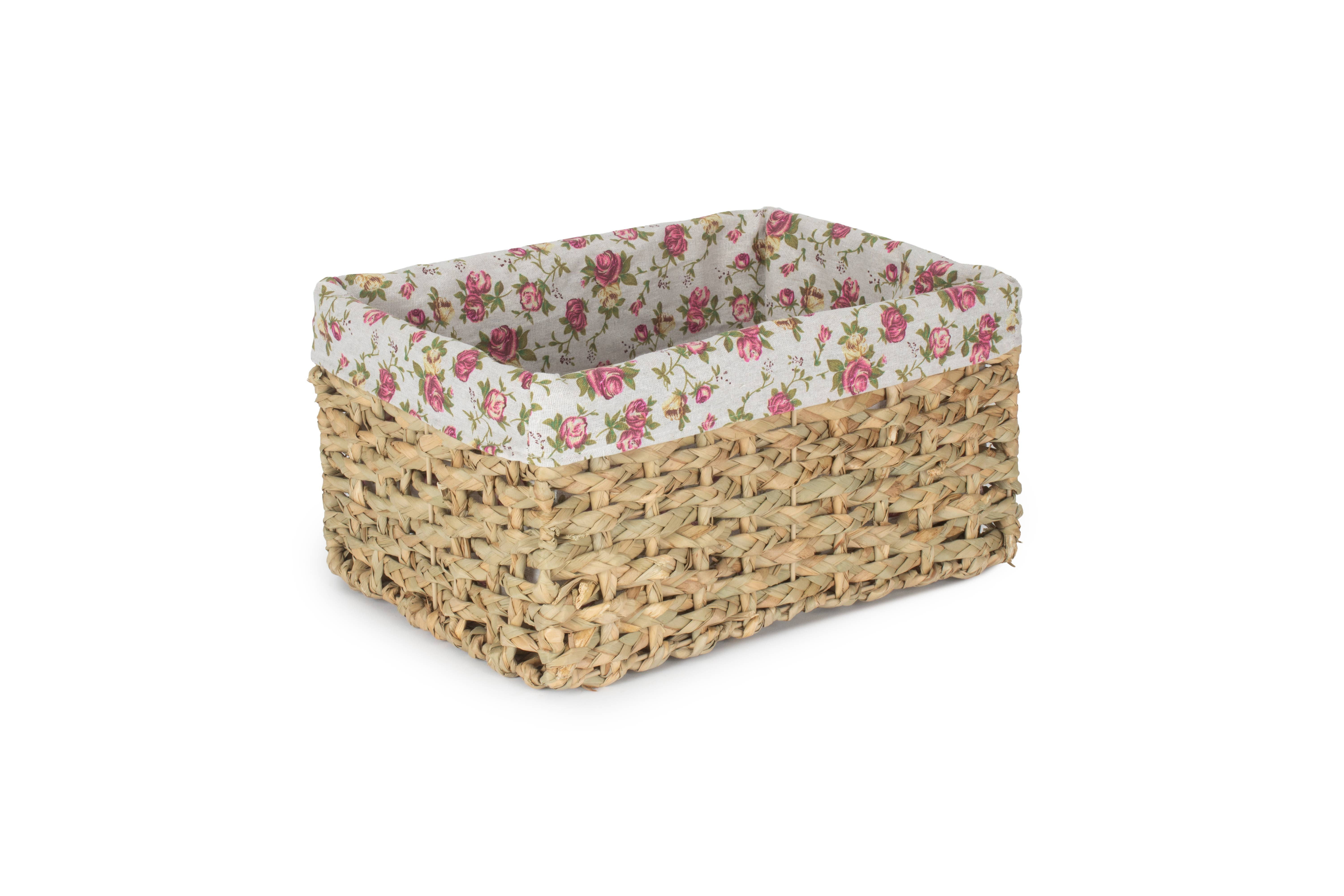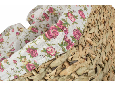 SMALL THATCH GRASS STORAGE BASKET with GARDEN ROSE LINING