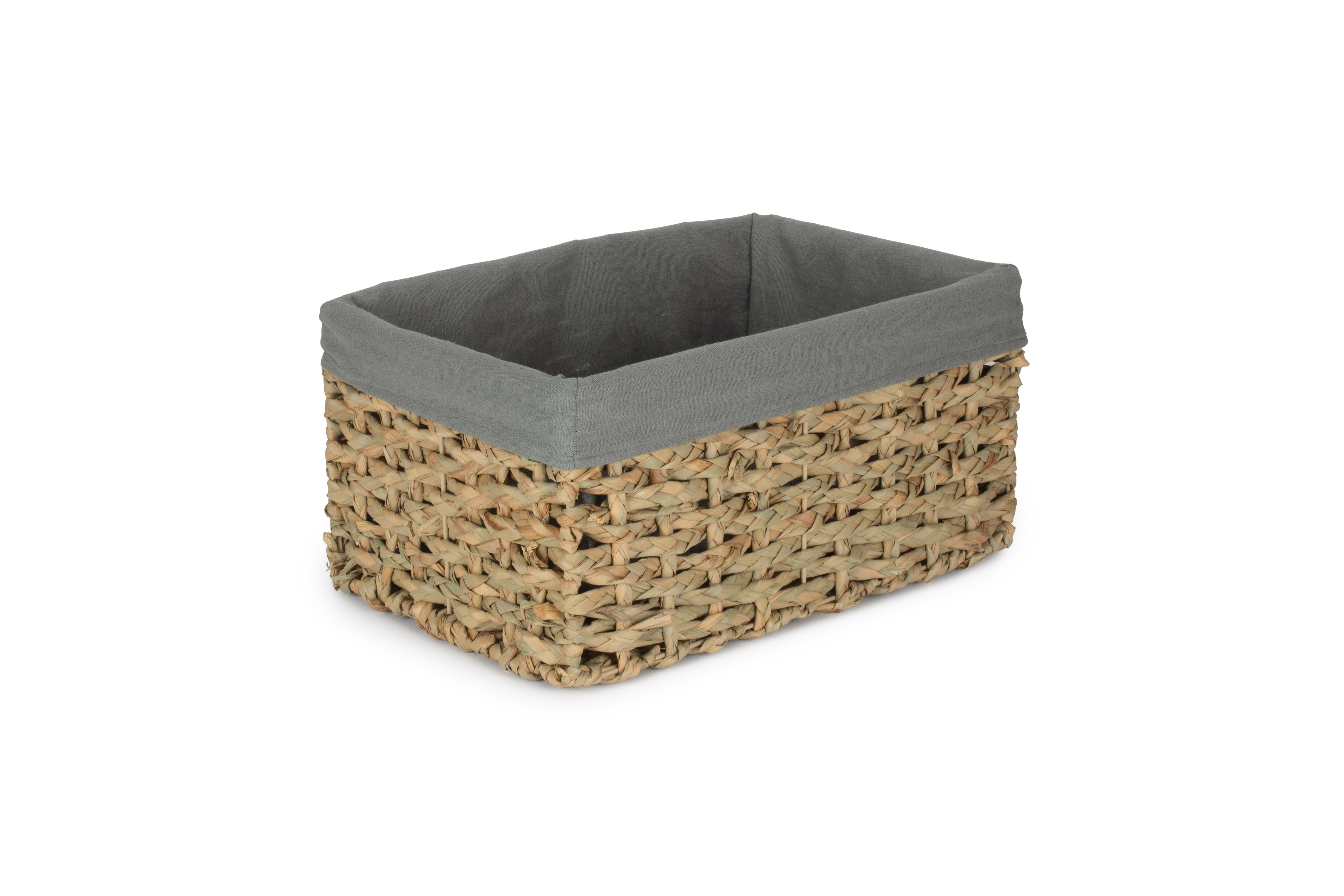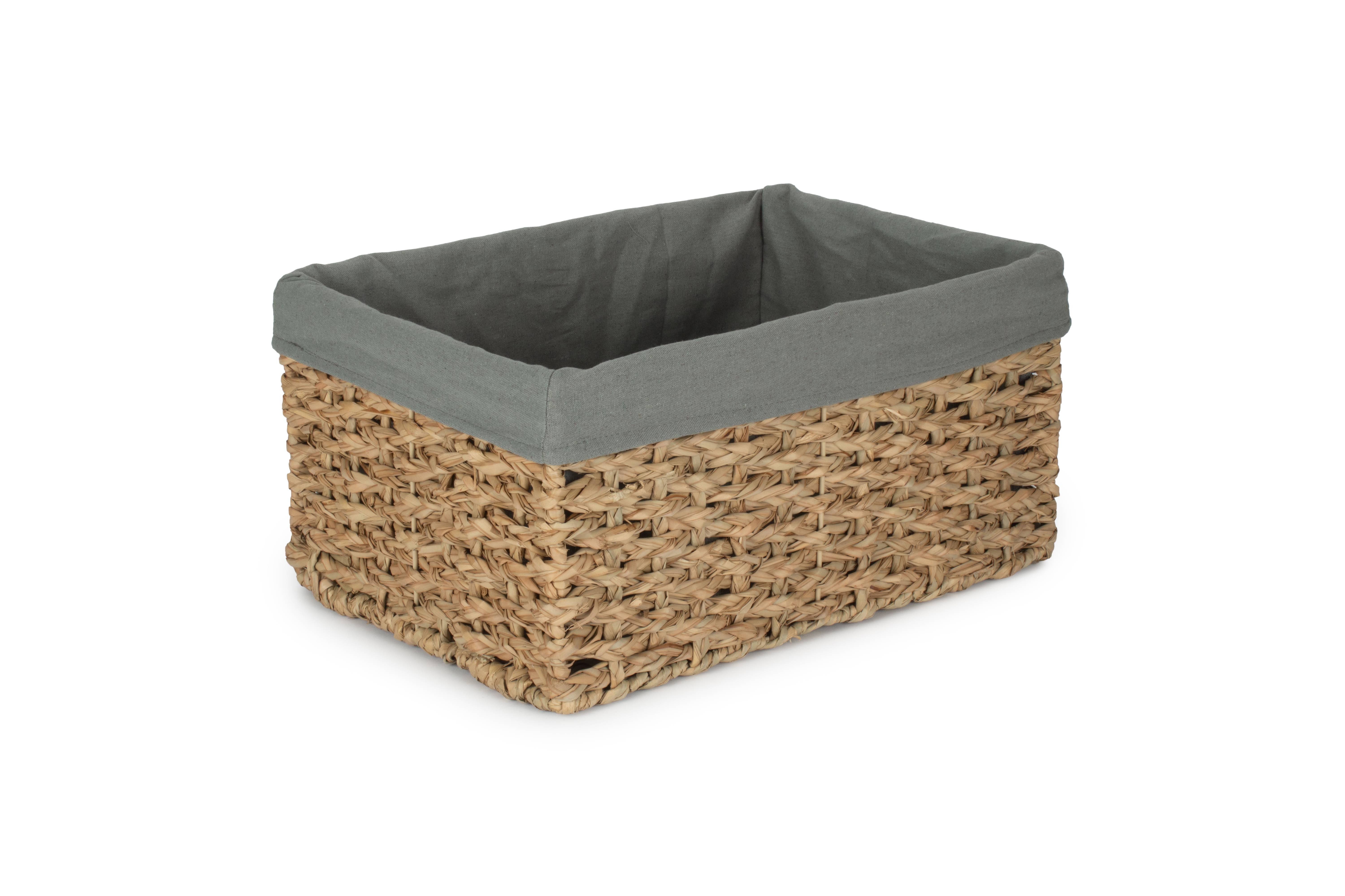 SMALL THATCH GRASS STORAGE BASKET with SAGE GREY LINING