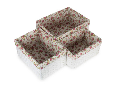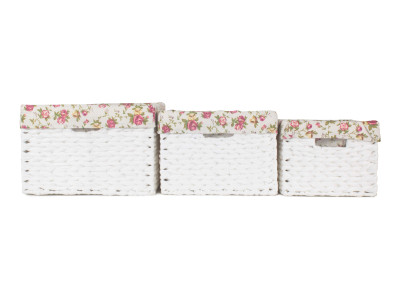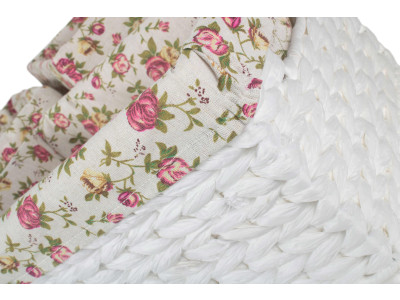 SIZE 3 WHITE PAPER ROPE RECTANGULAR STORAGE BASKET with GARDEN ROSE LINING