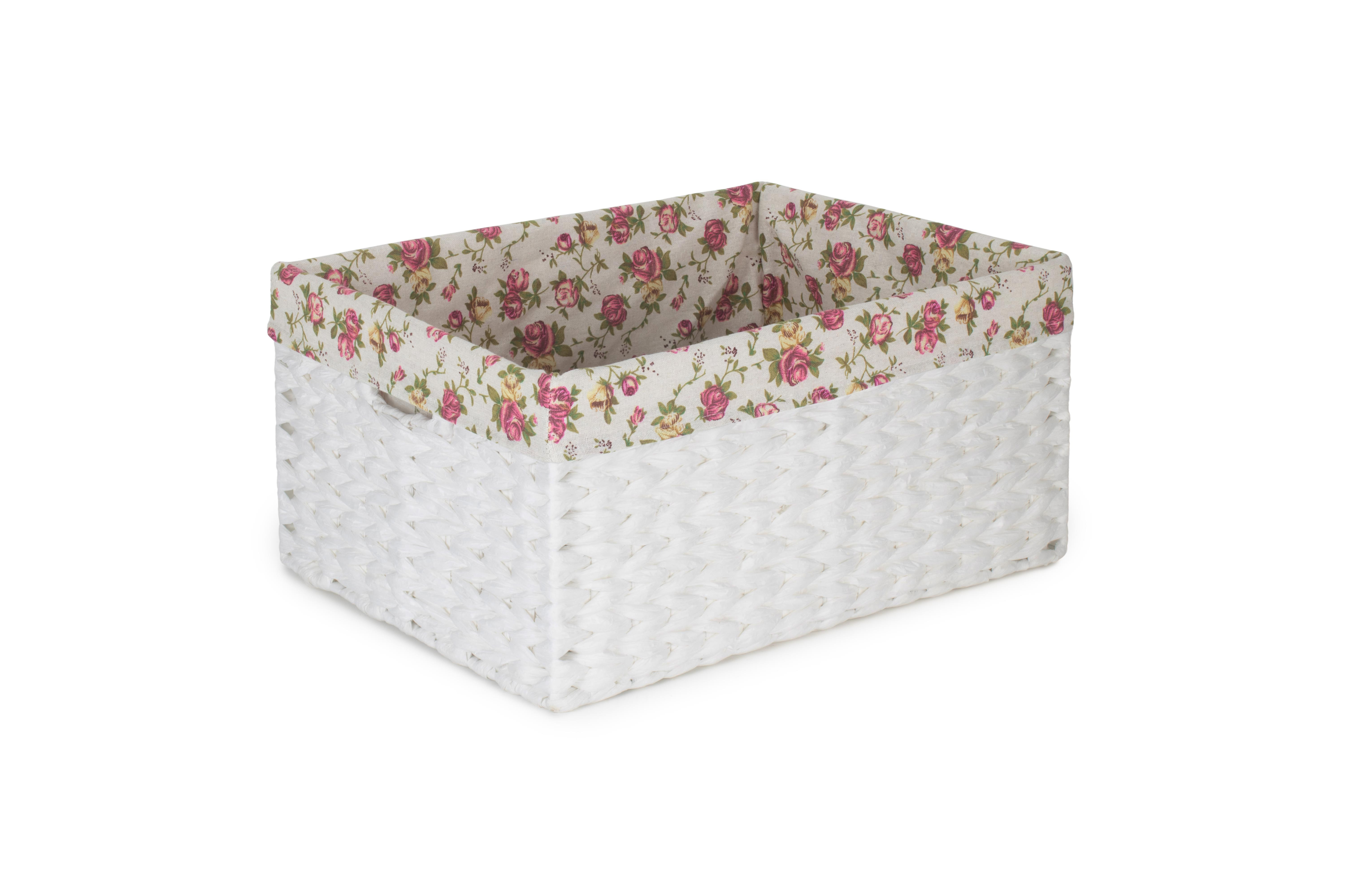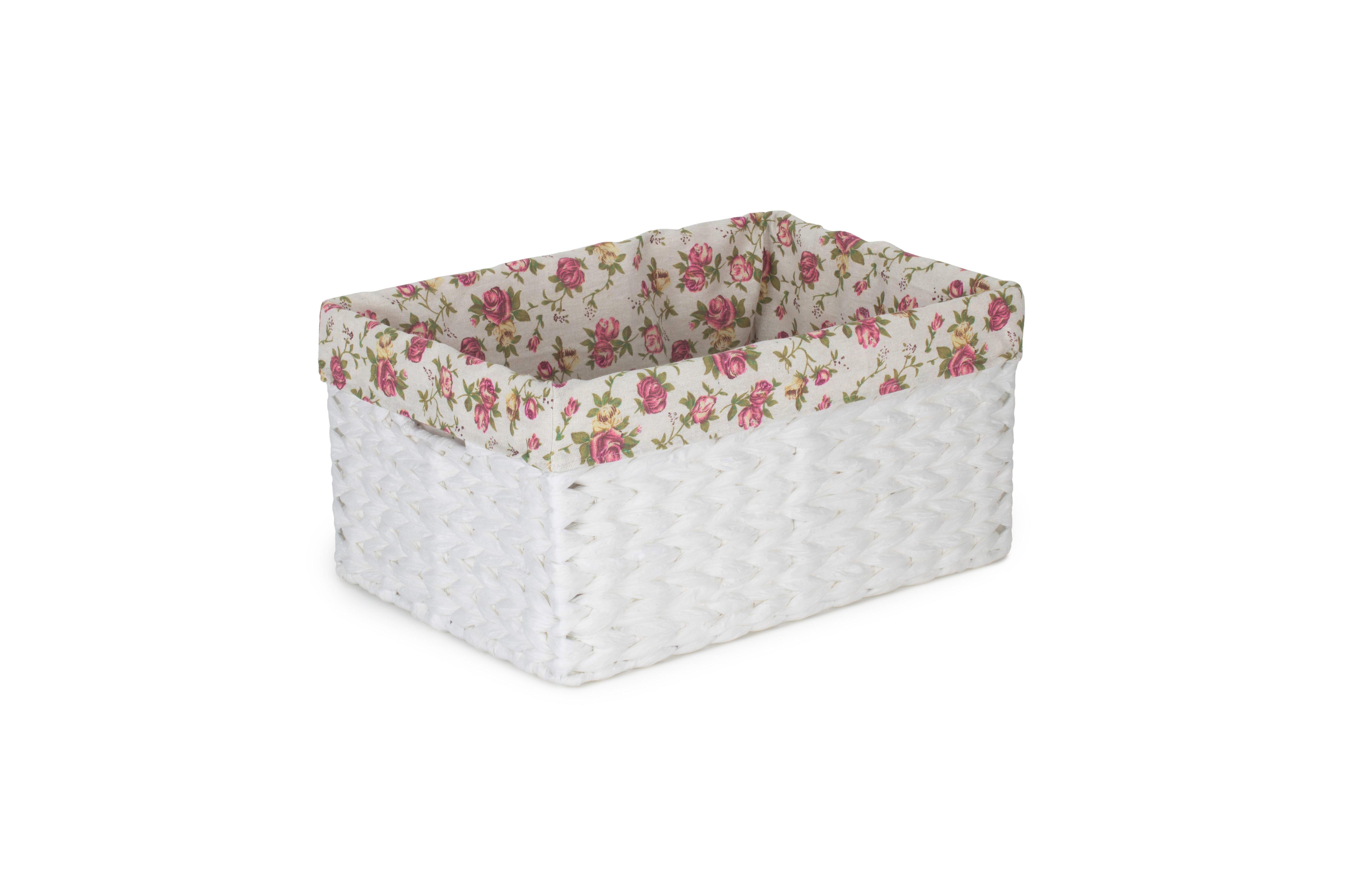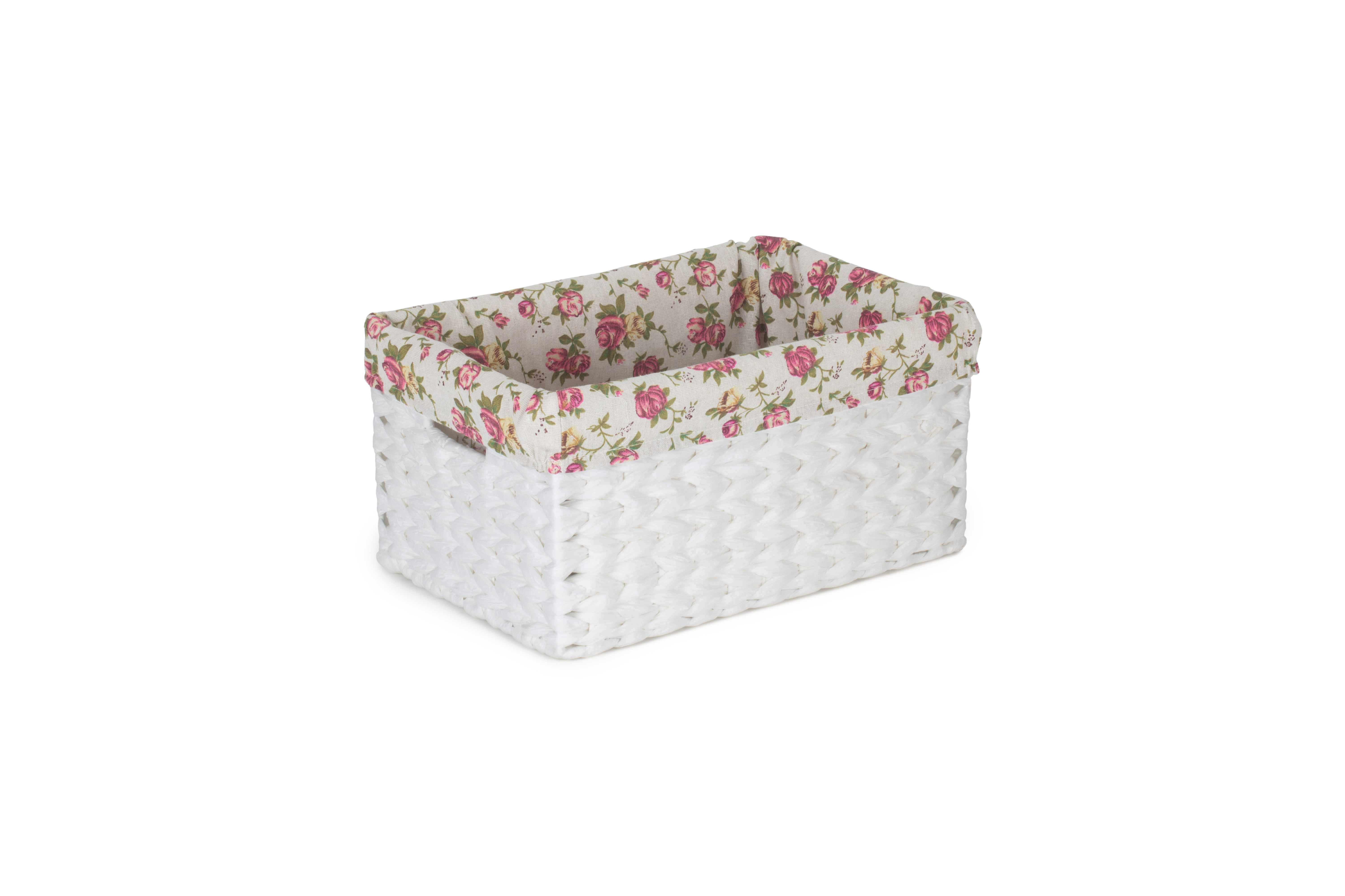 SIZE 1 WHITE PAPER ROPE RECTANGULAR STORAGE BASKET with GARDEN ROSE LINING