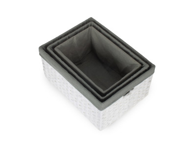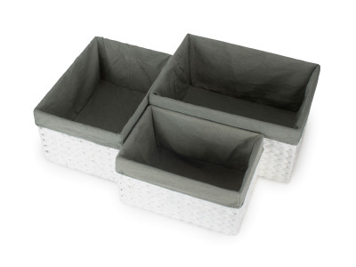 SIZE 3 WHITE PAPER ROPE RECTANGULAR STORAGE BASKET with GREY SAGE LINING