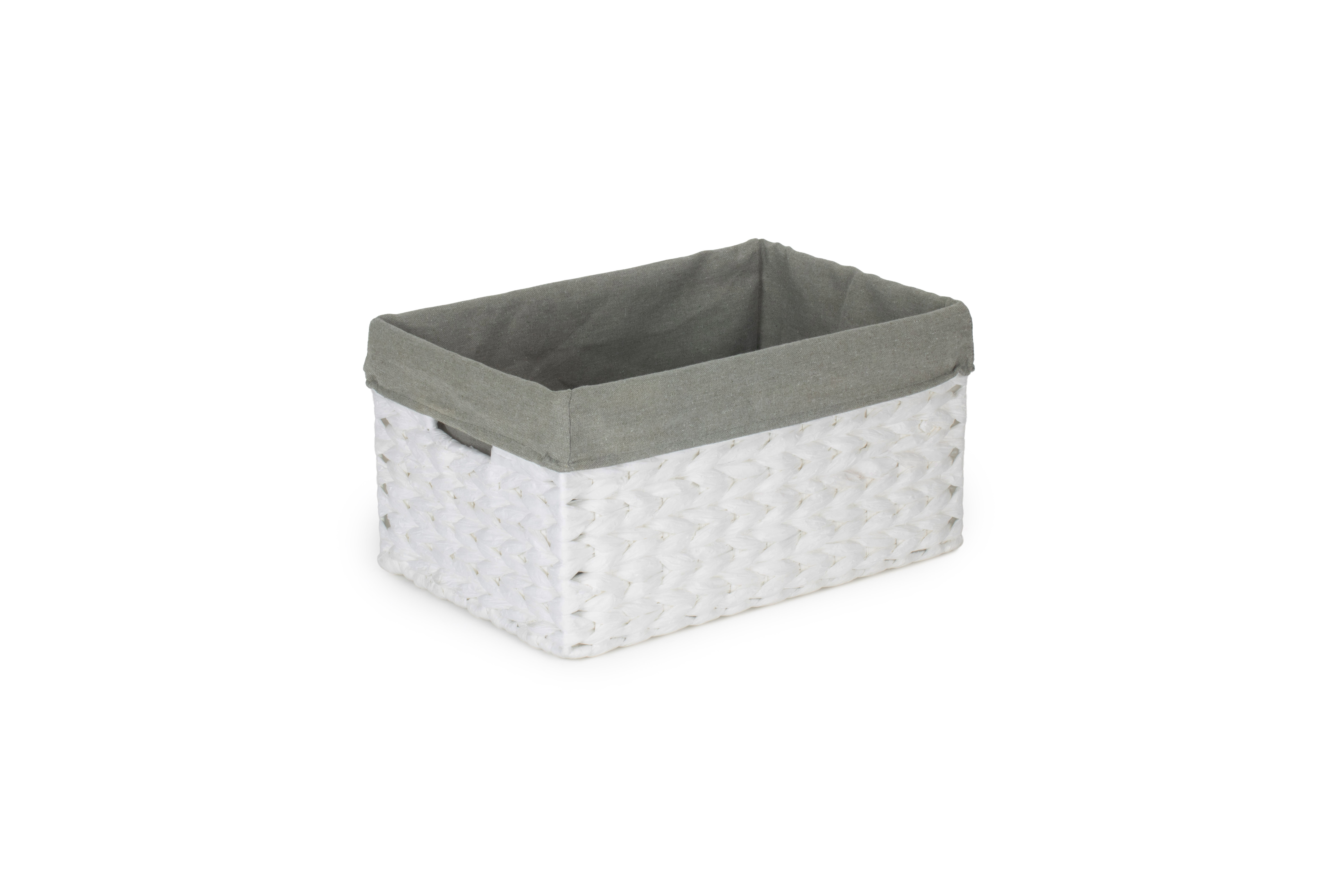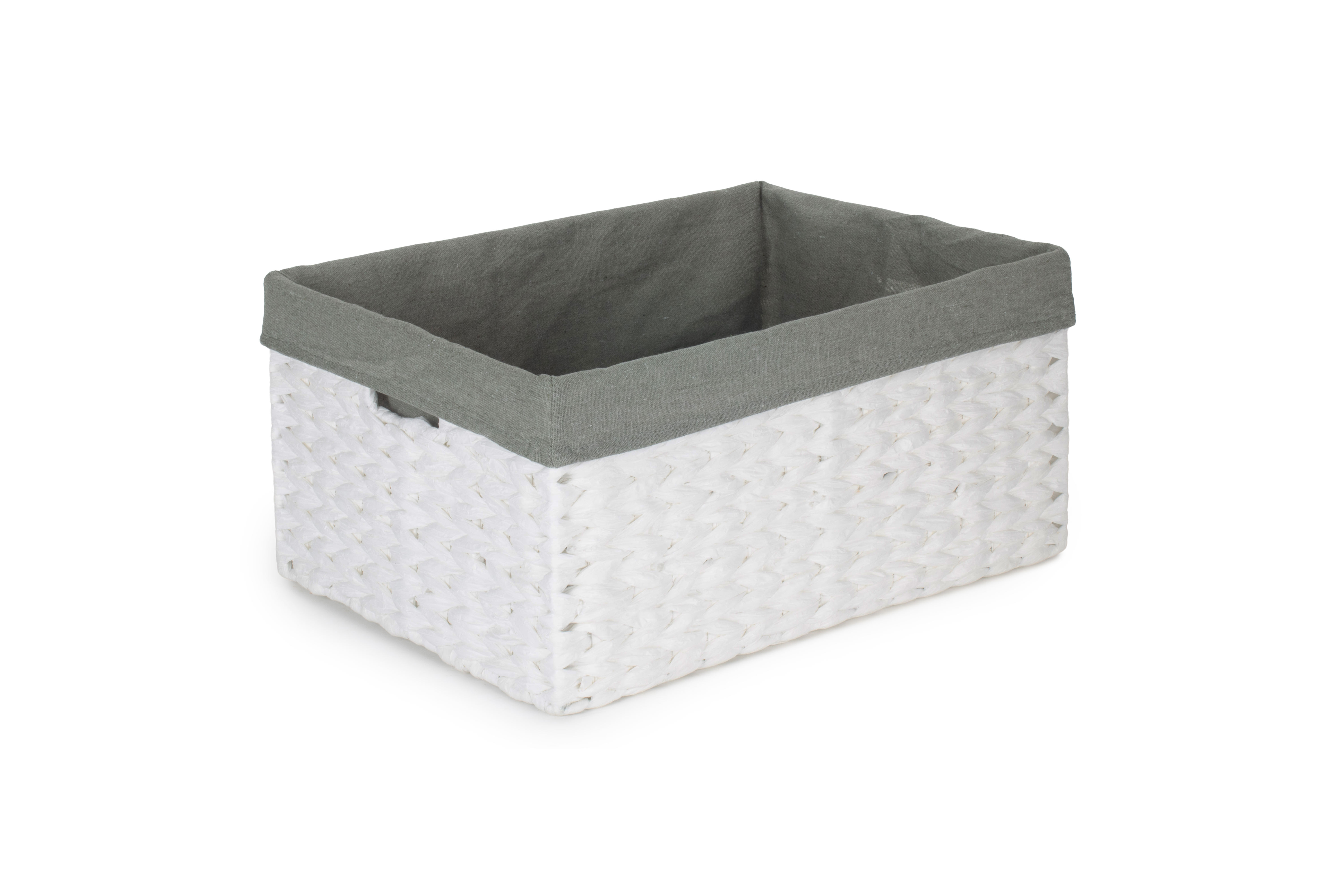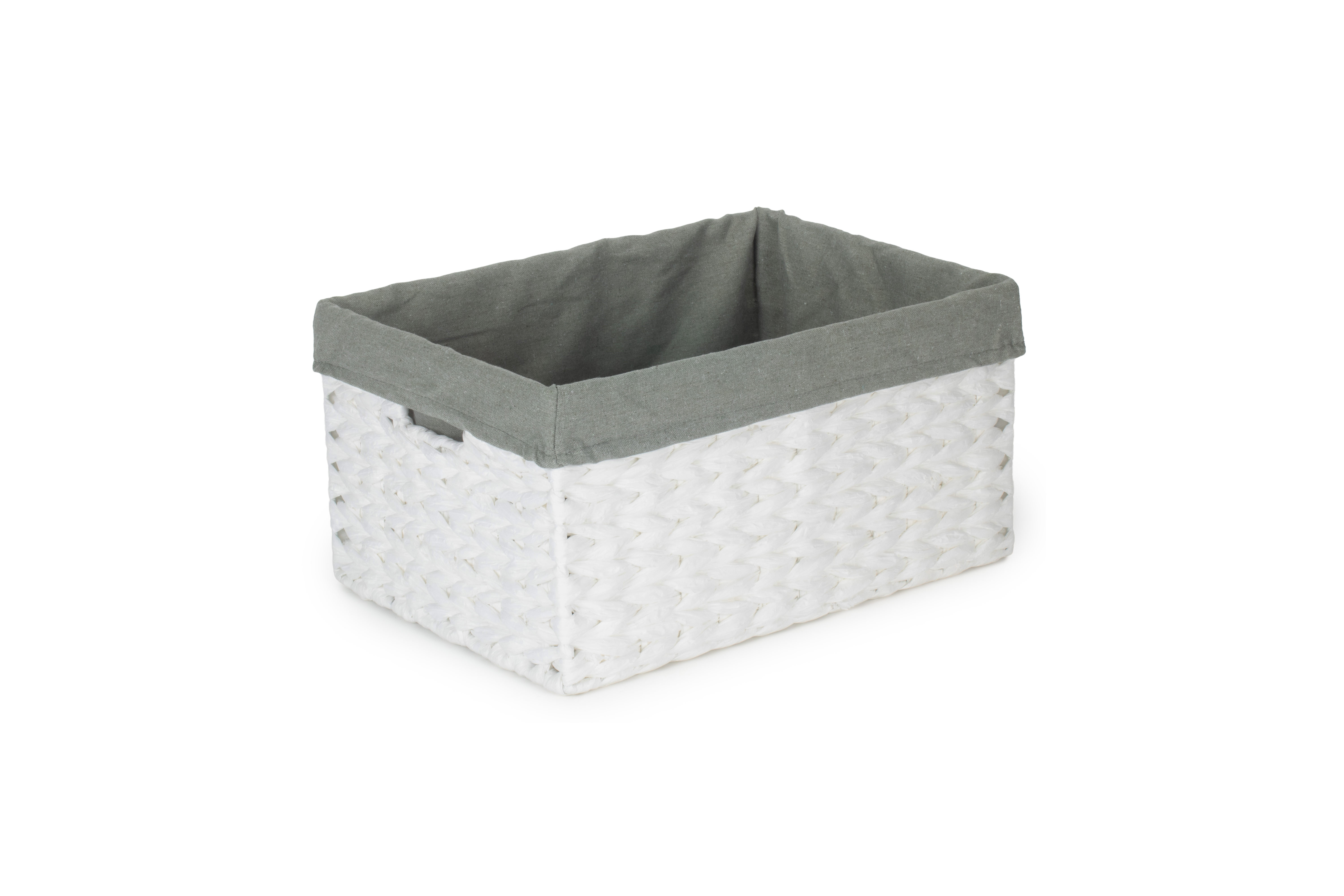 SIZE 1 WHITE PAPER ROPE RECTANGULAR STORAGE BASKET with GREY SAGE LINING