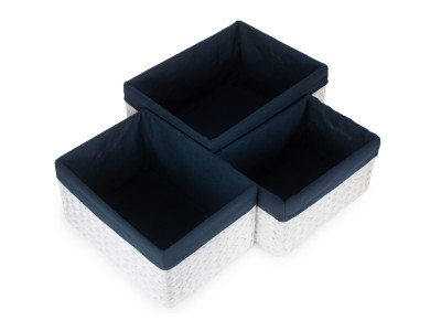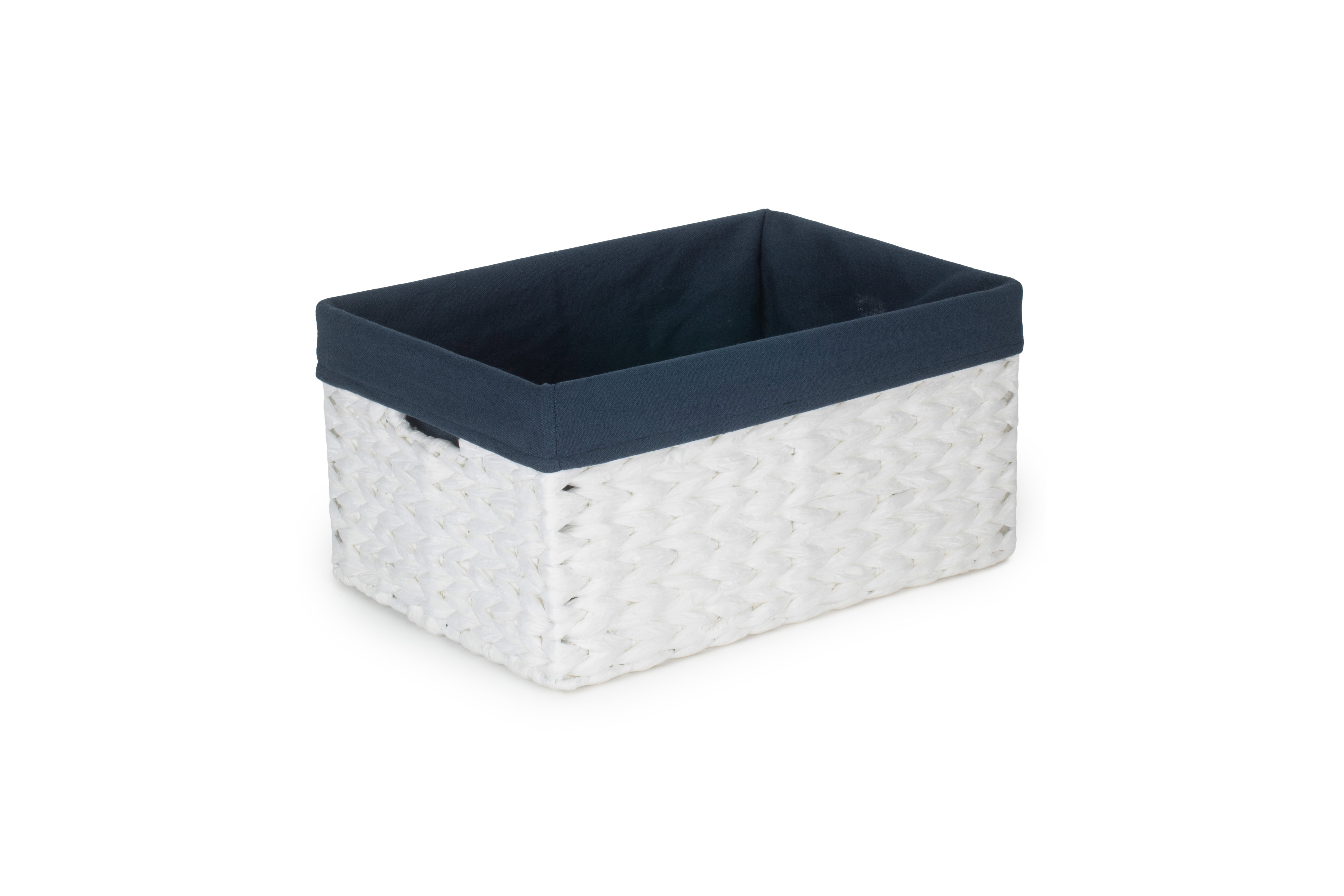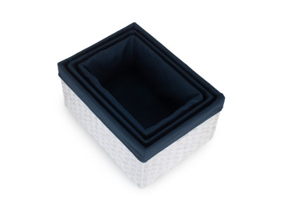 SIZE 1 WHITE PAPER ROPE RECTANGULAR STORAGE BASKETS with NAVY BLUE LINING