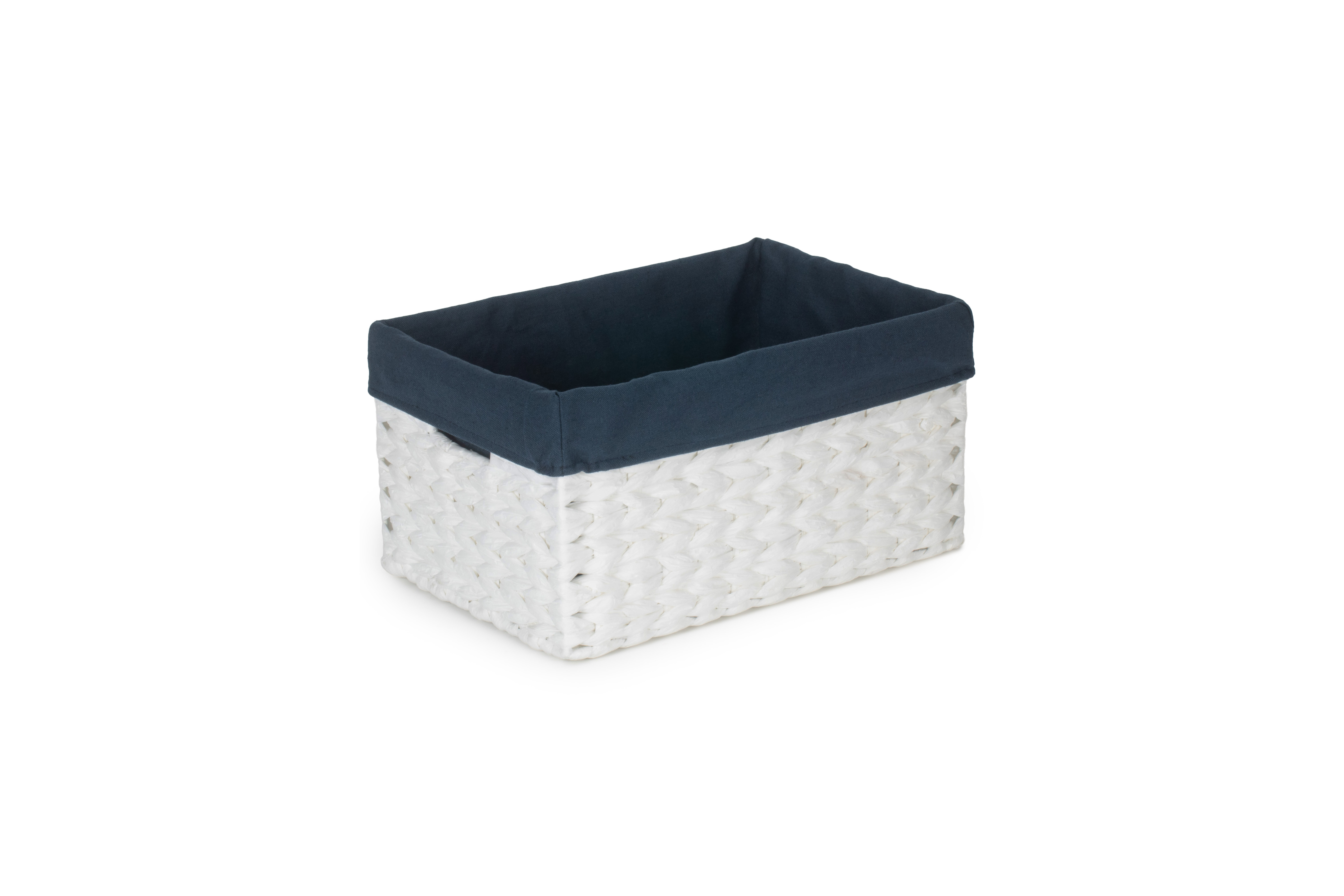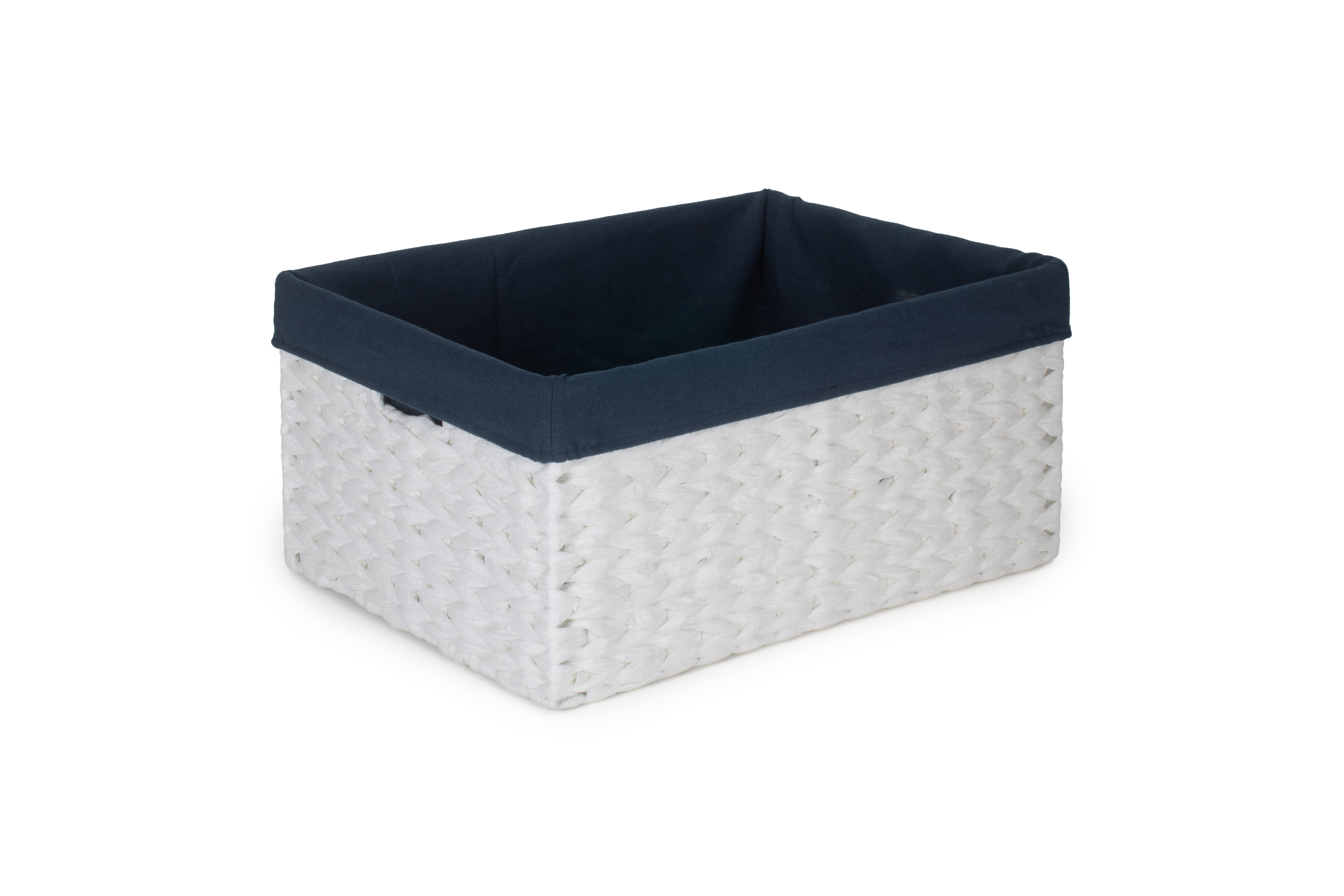 SIZE 2 WHITE PAPER ROPE RECTANGULAR STORAGE BASKET with NAVY BLUE LINING