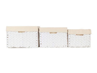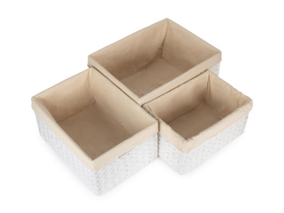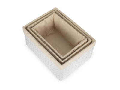 SIZE 3 WHITE PAPER ROPE RECTANGULAR STORAGE BASKET with WHITE LINING