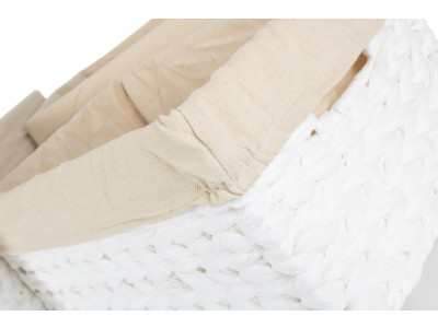 White twisted paper woven onto white painted metal frame - integral handles - cotton / polyester removable lining
