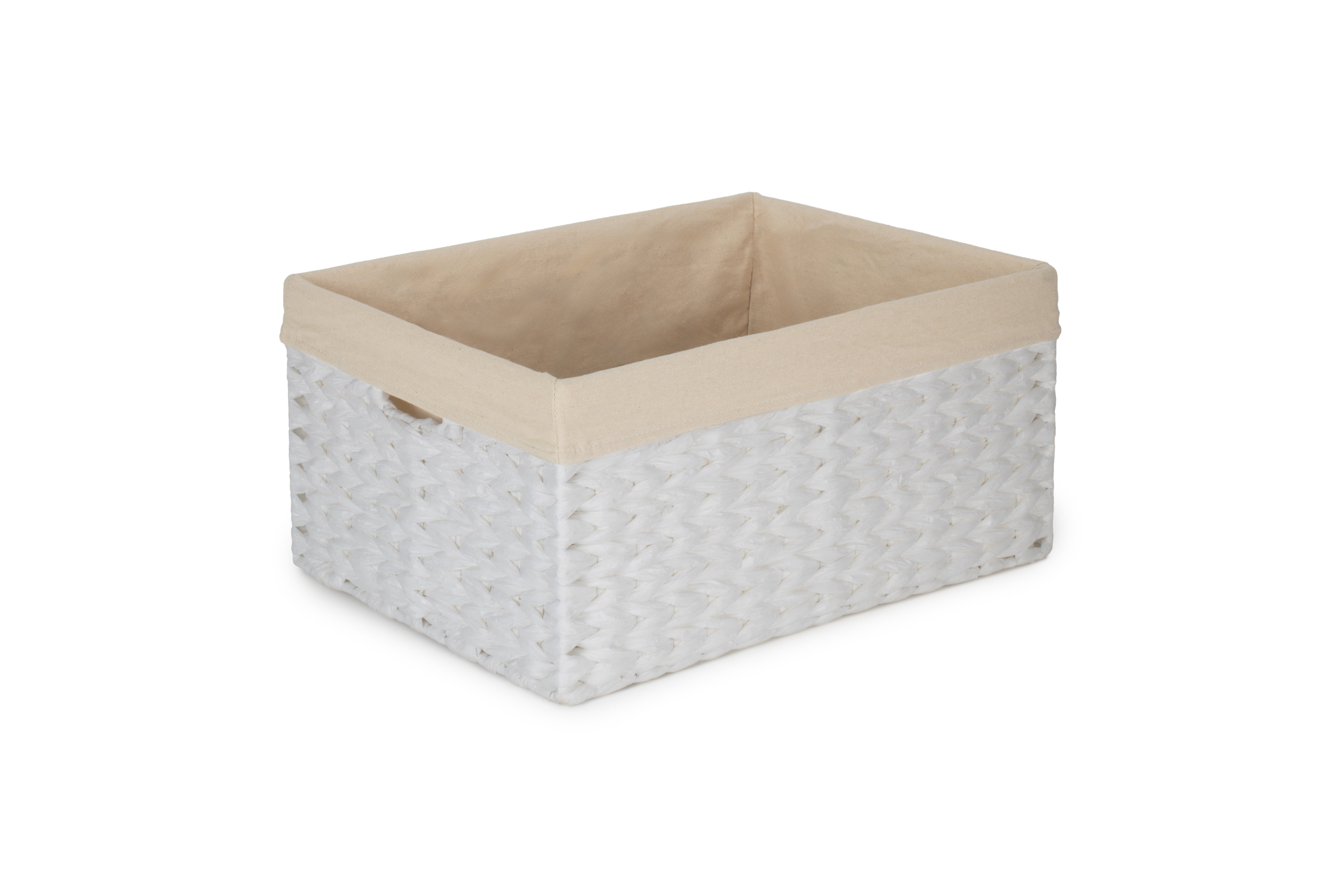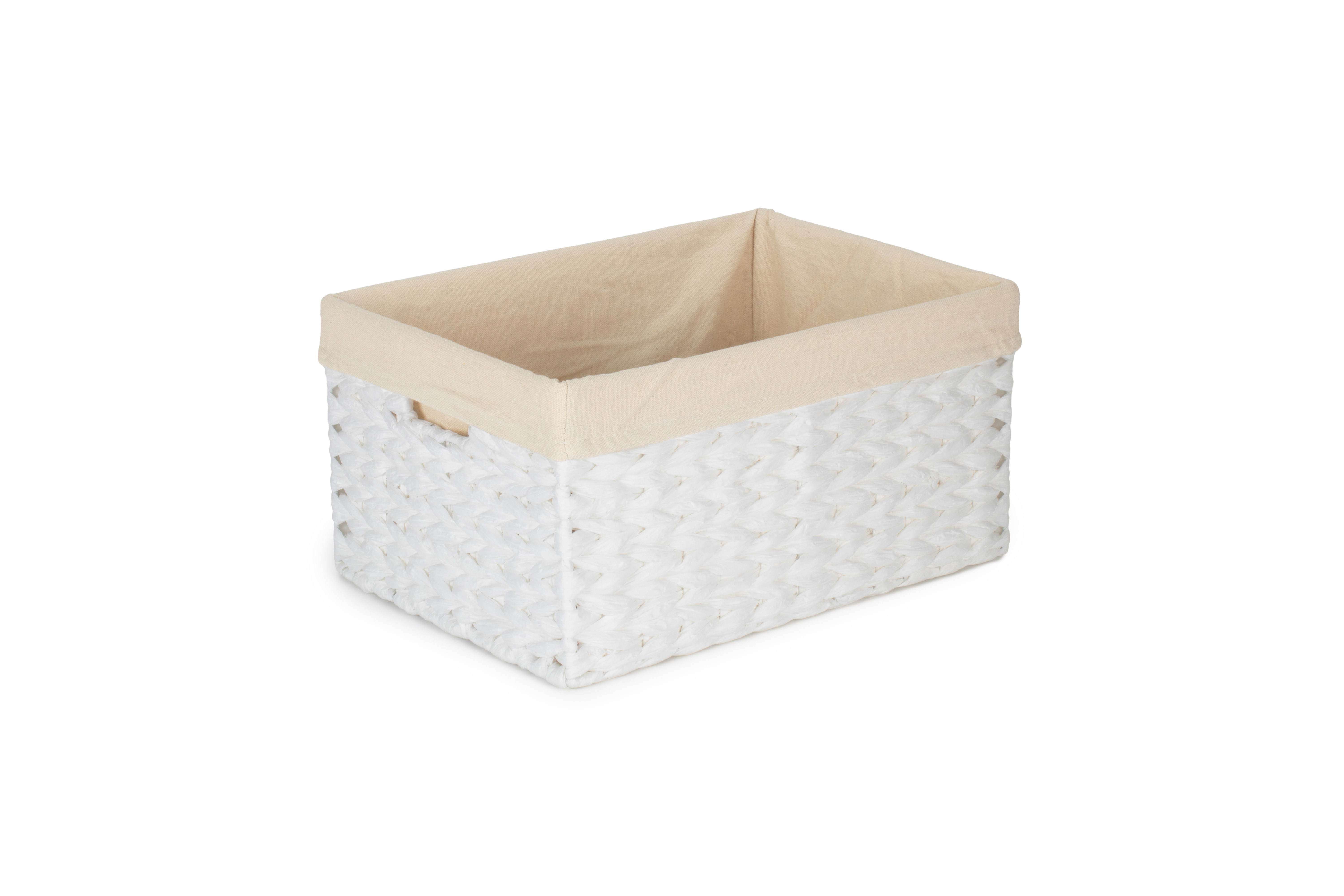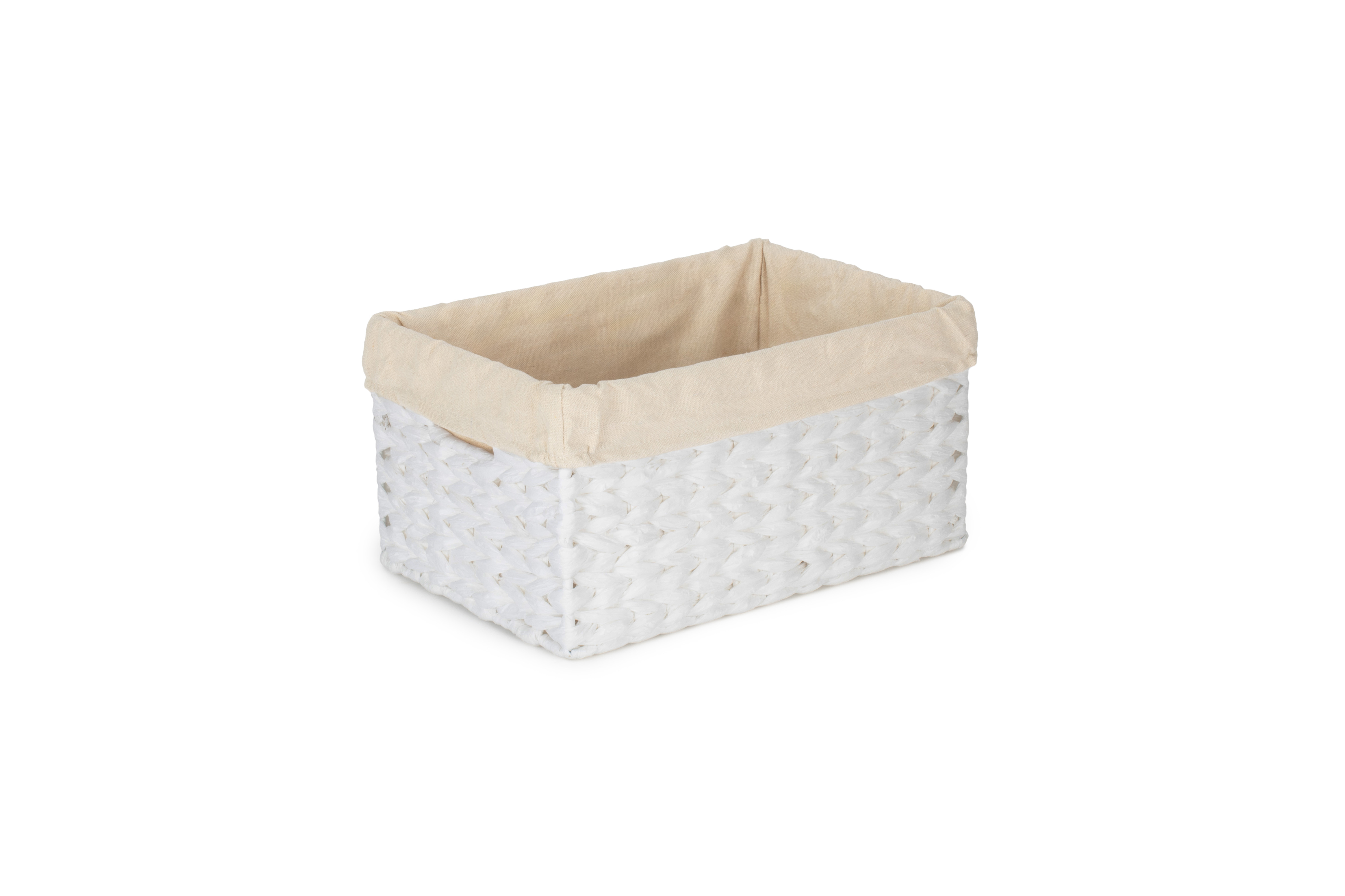 SIZE 1 WHITE PAPER ROPE RECTANGULAR STORAGE BASKET with WHITE LINING